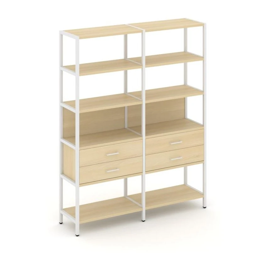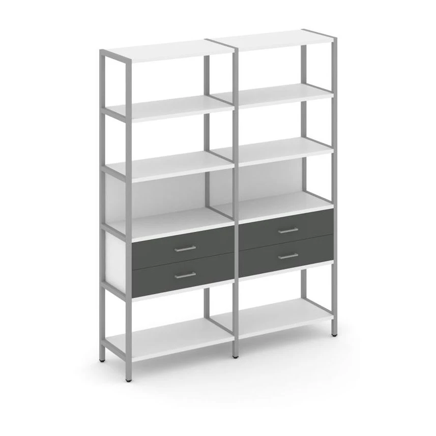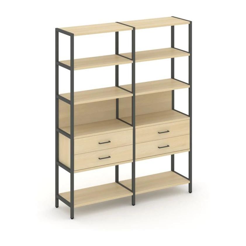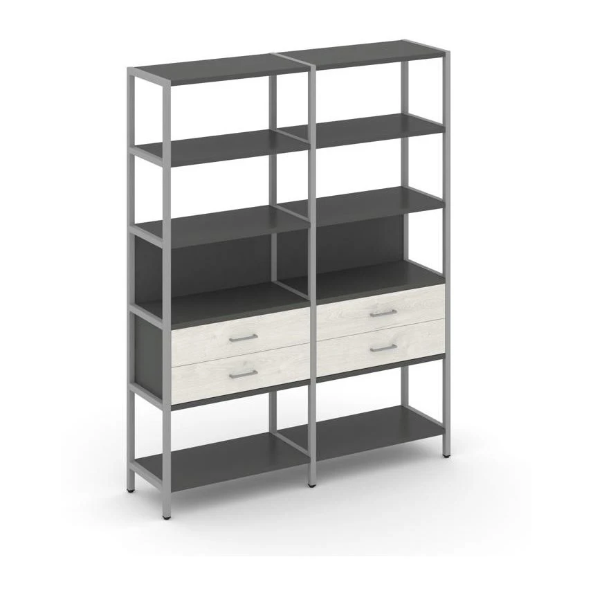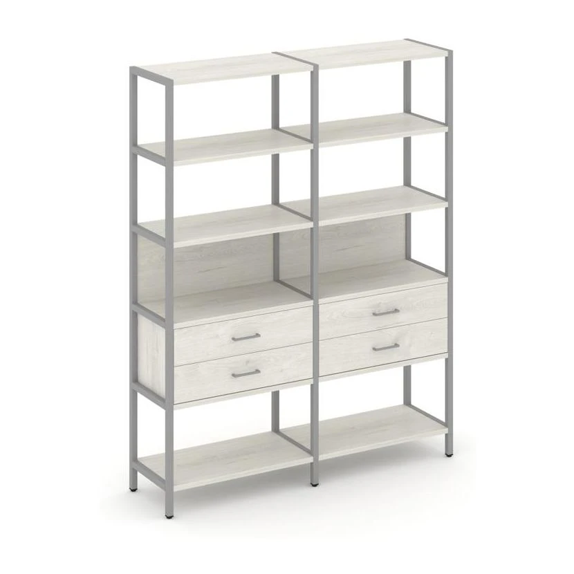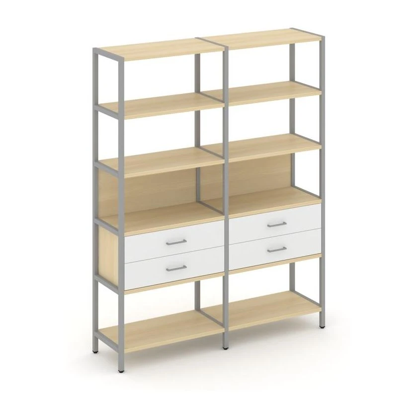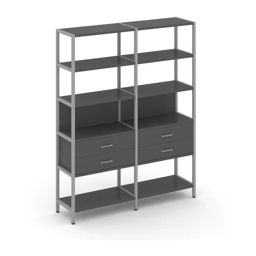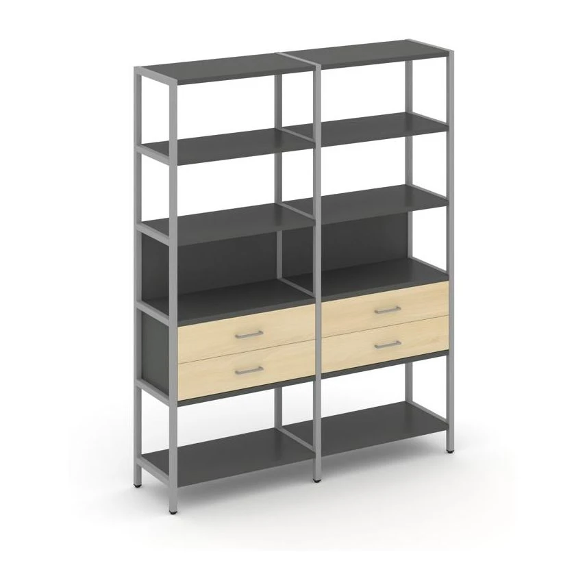 - Двухсекционный стеллаж пятиярусный с ящиками 1590х400х1980 Шелф Систем / Shelf System