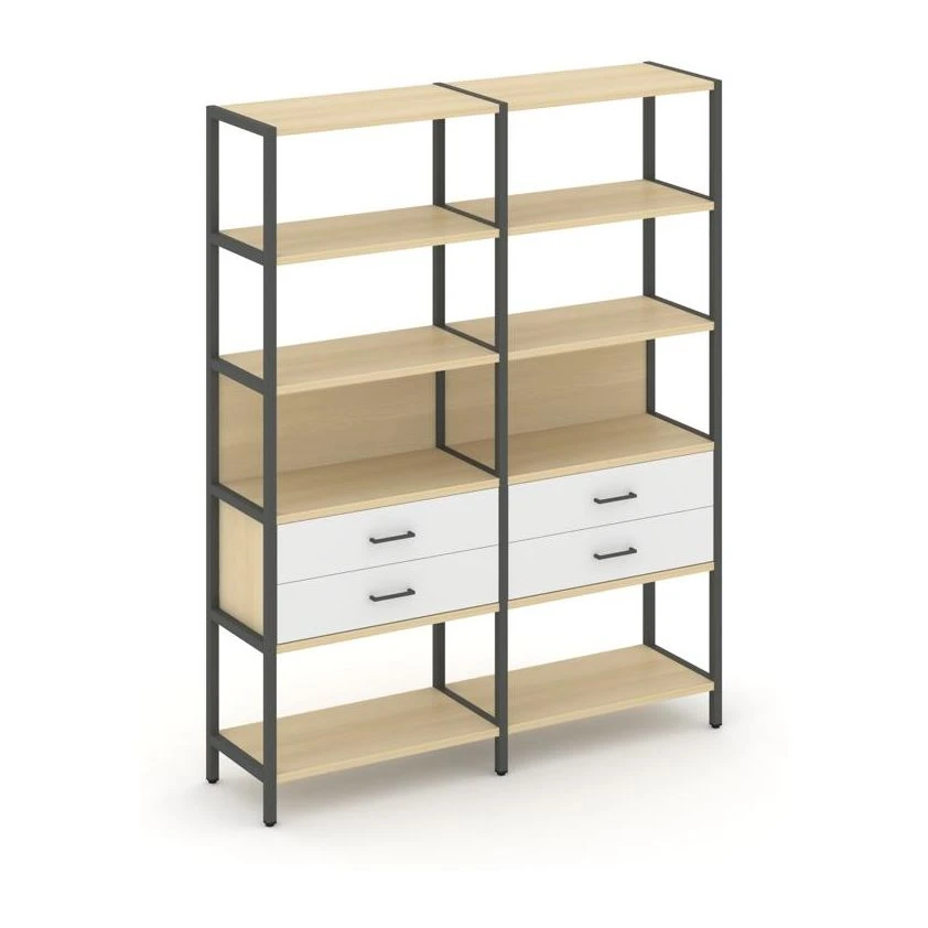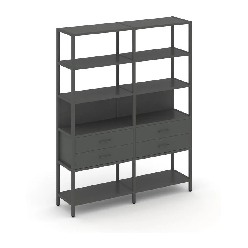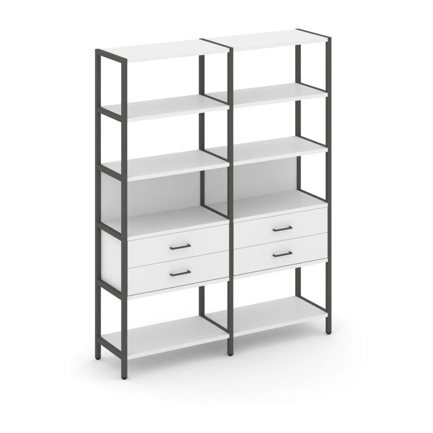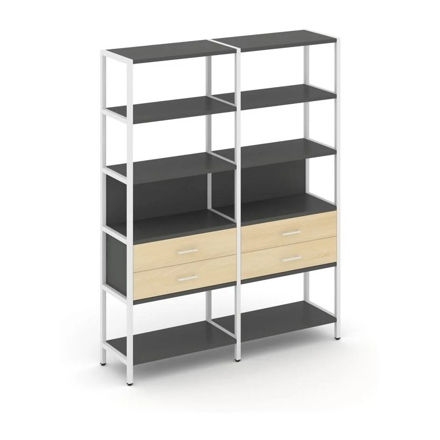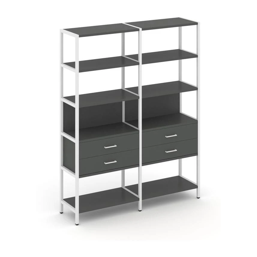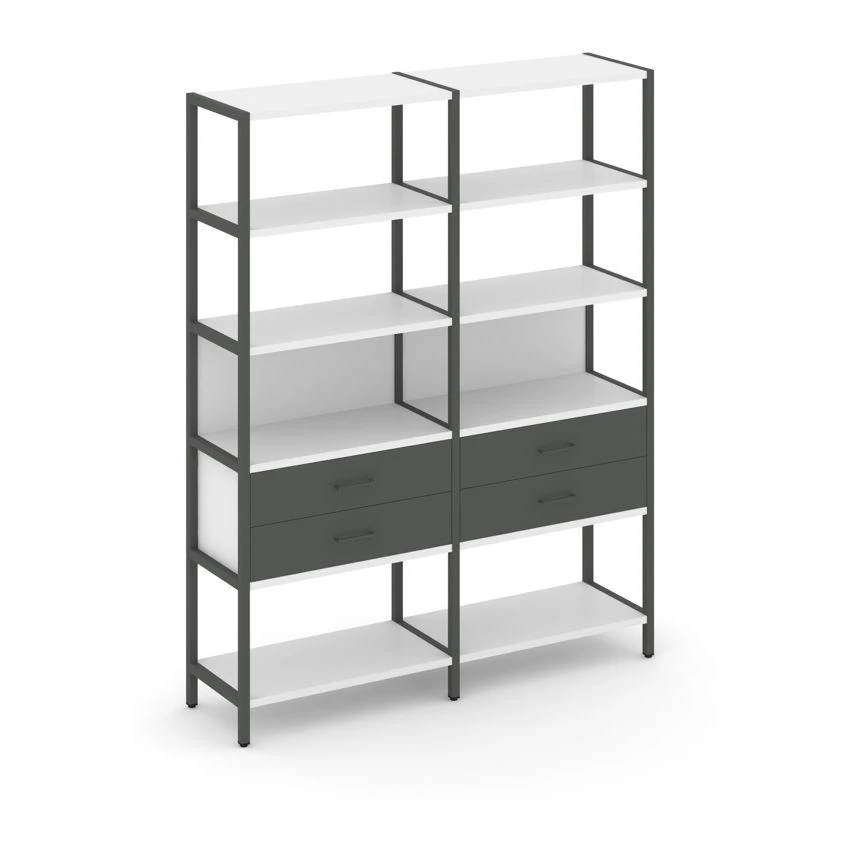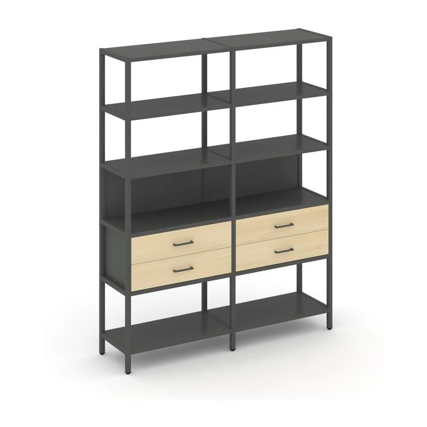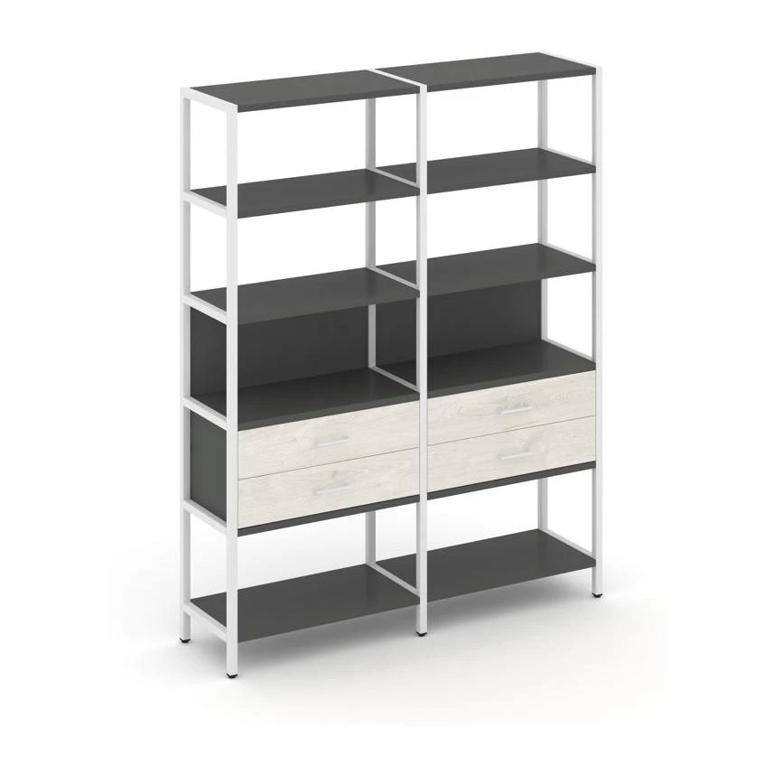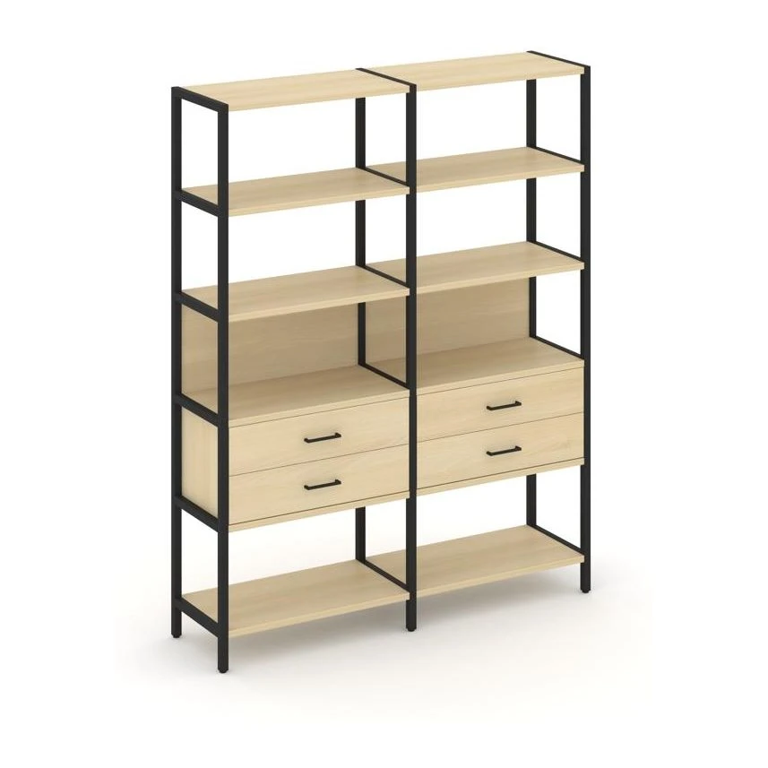 - Двухсекционный стеллаж пятиярусный с ящиками 1590х400х1980 Шелф Систем / Shelf System