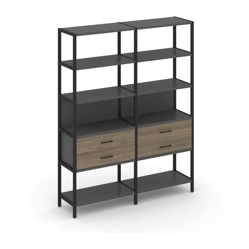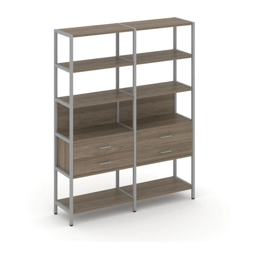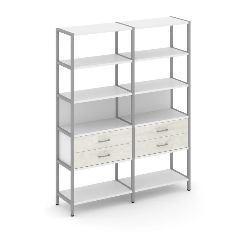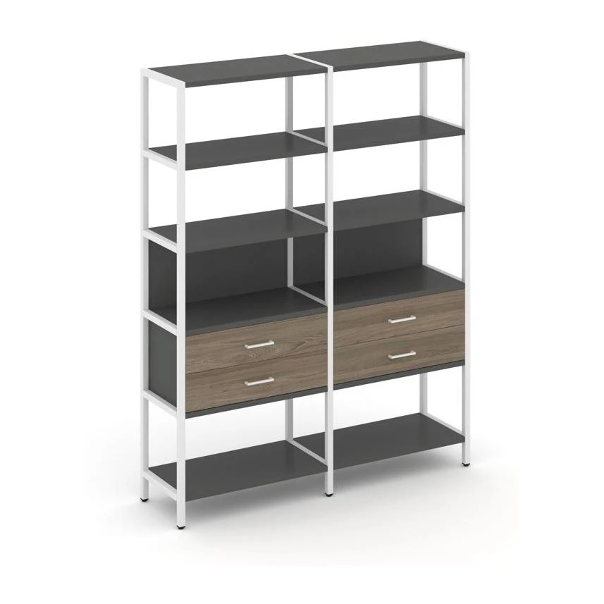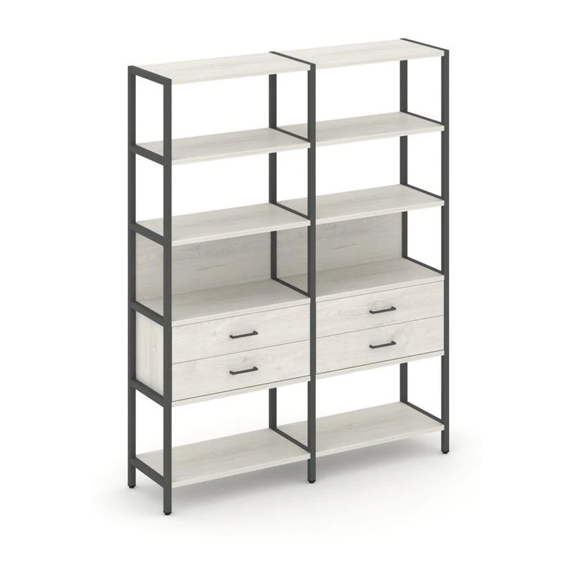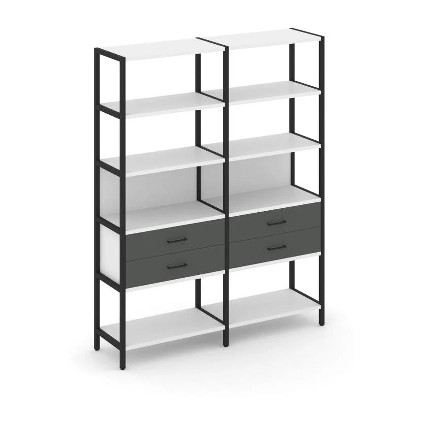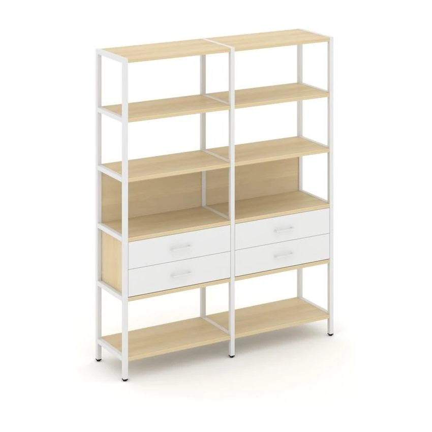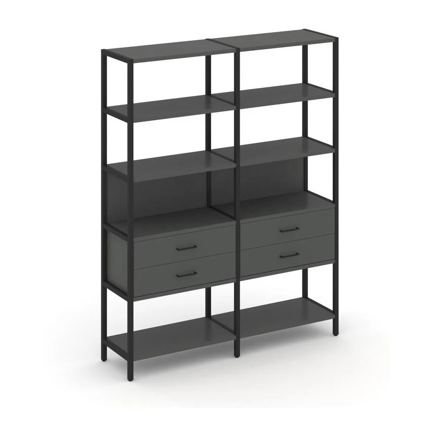 - Двухсекционный стеллаж пятиярусный с ящиками 1590х400х1980 Шелф Систем / Shelf System