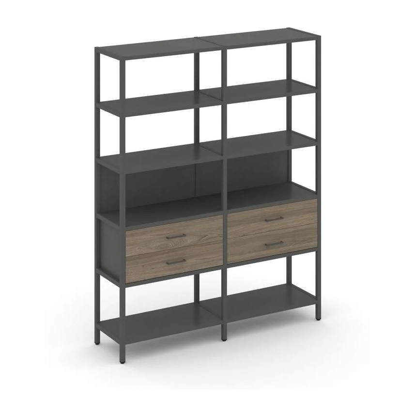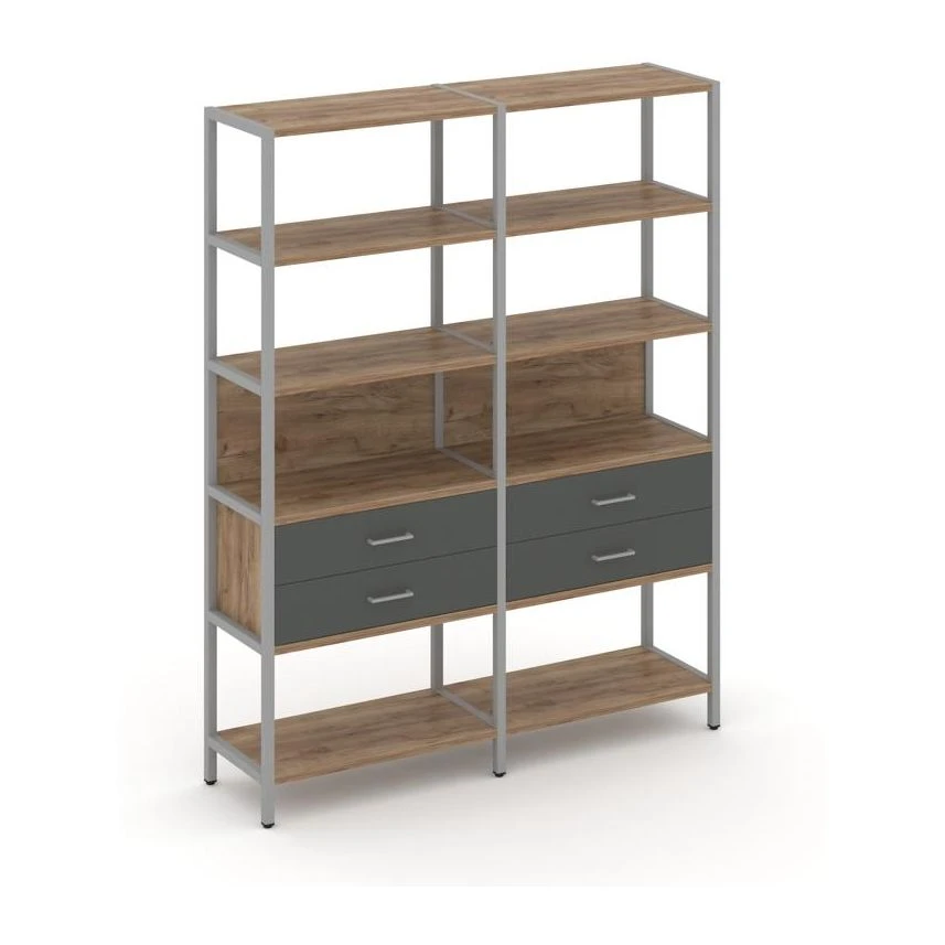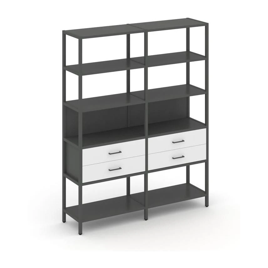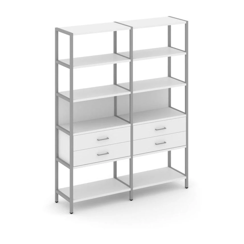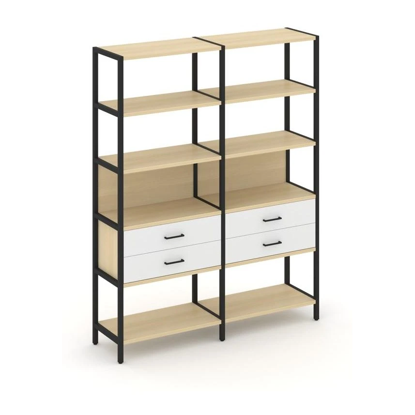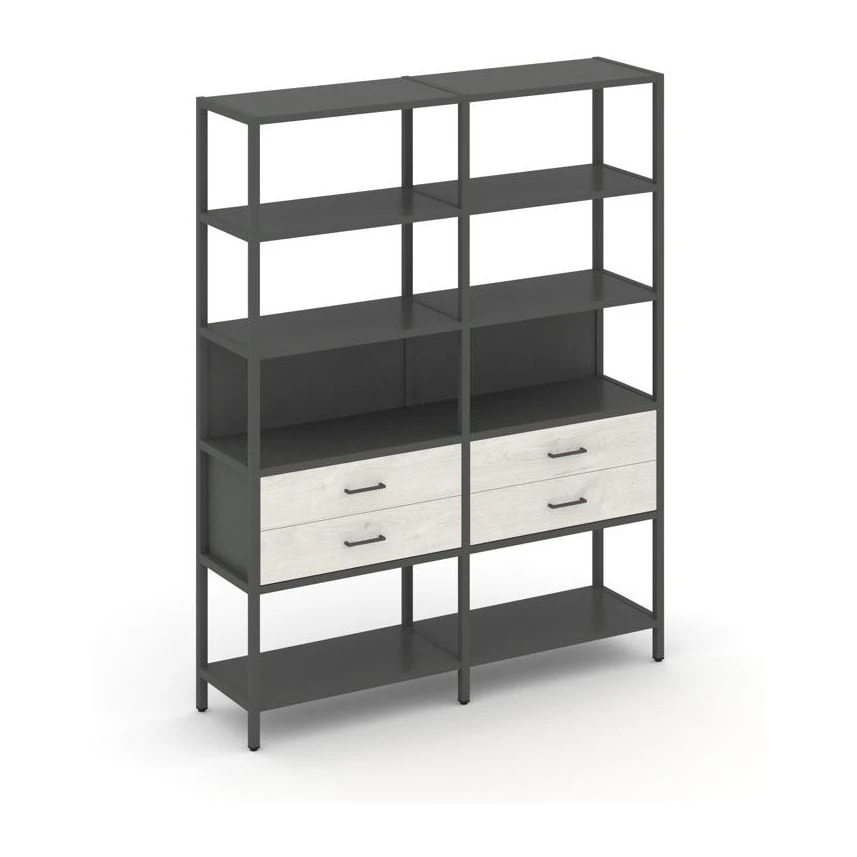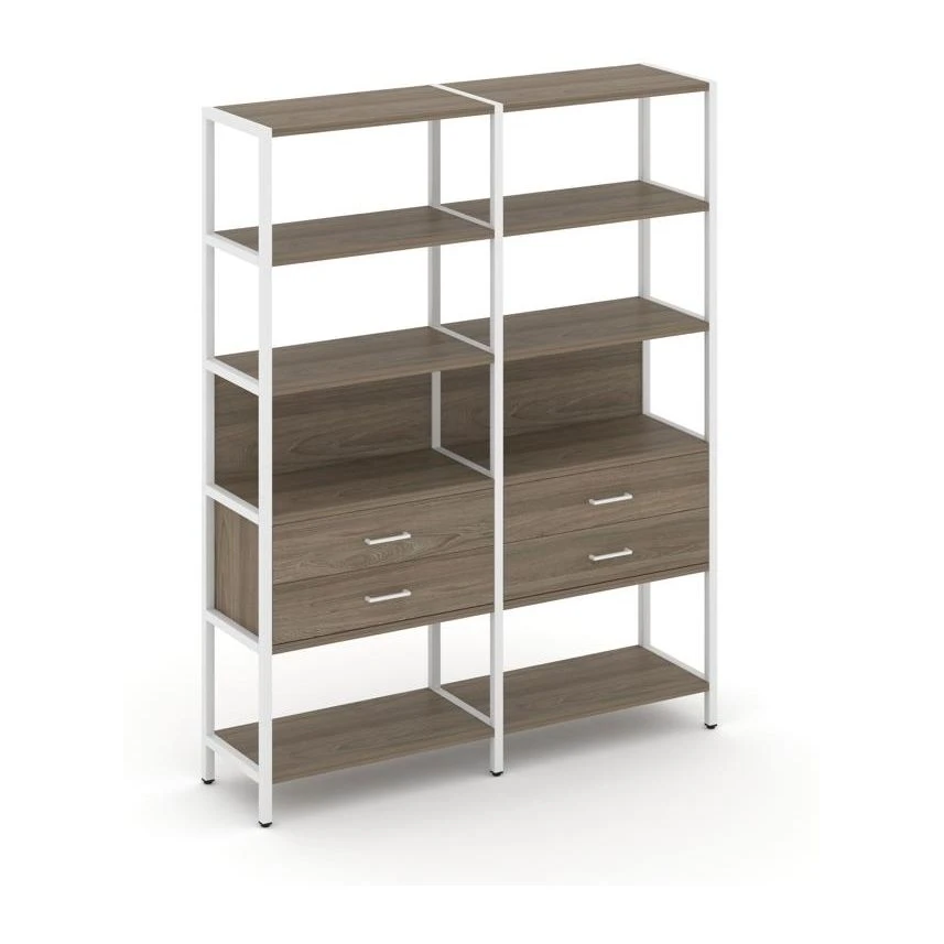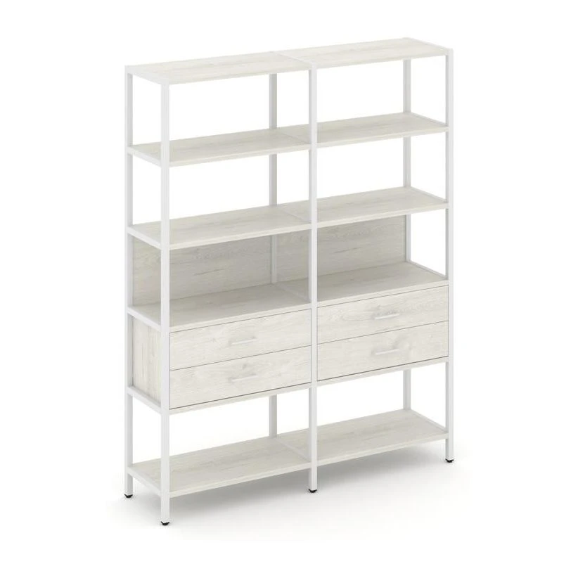 - Двухсекционный стеллаж пятиярусный с ящиками 1590х400х1980 Шелф Систем / Shelf System