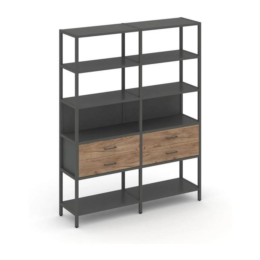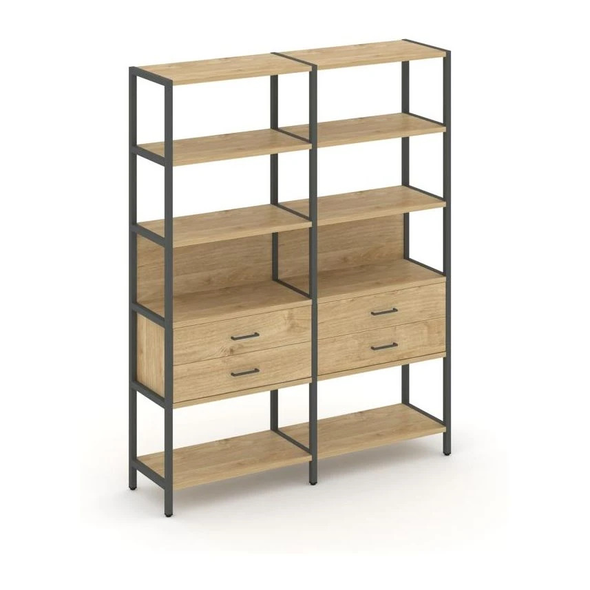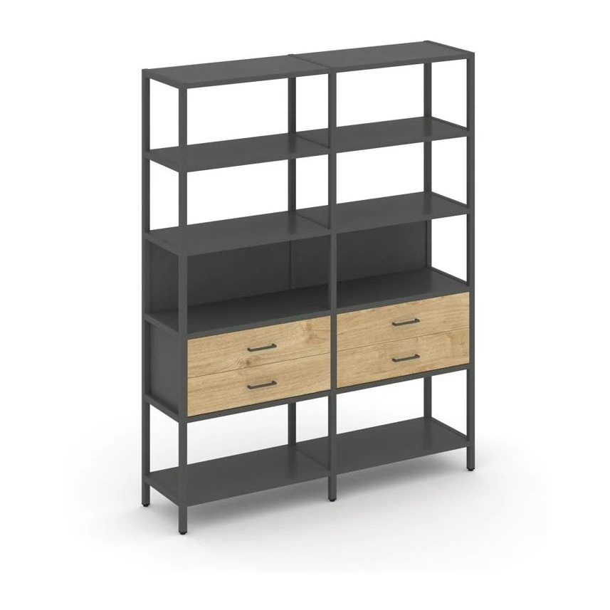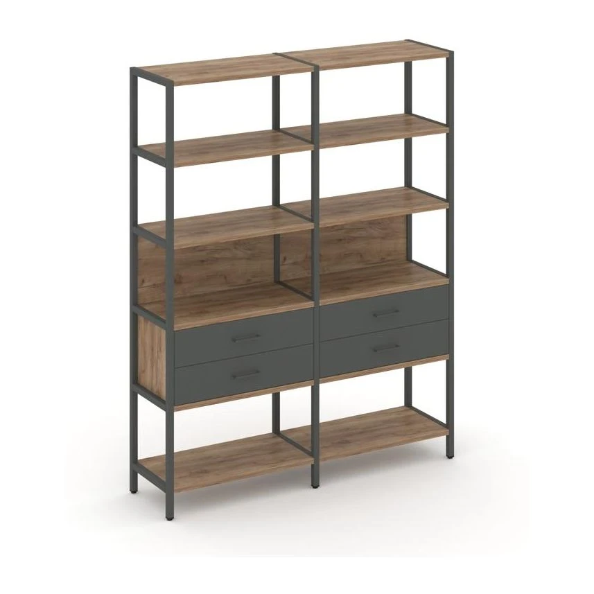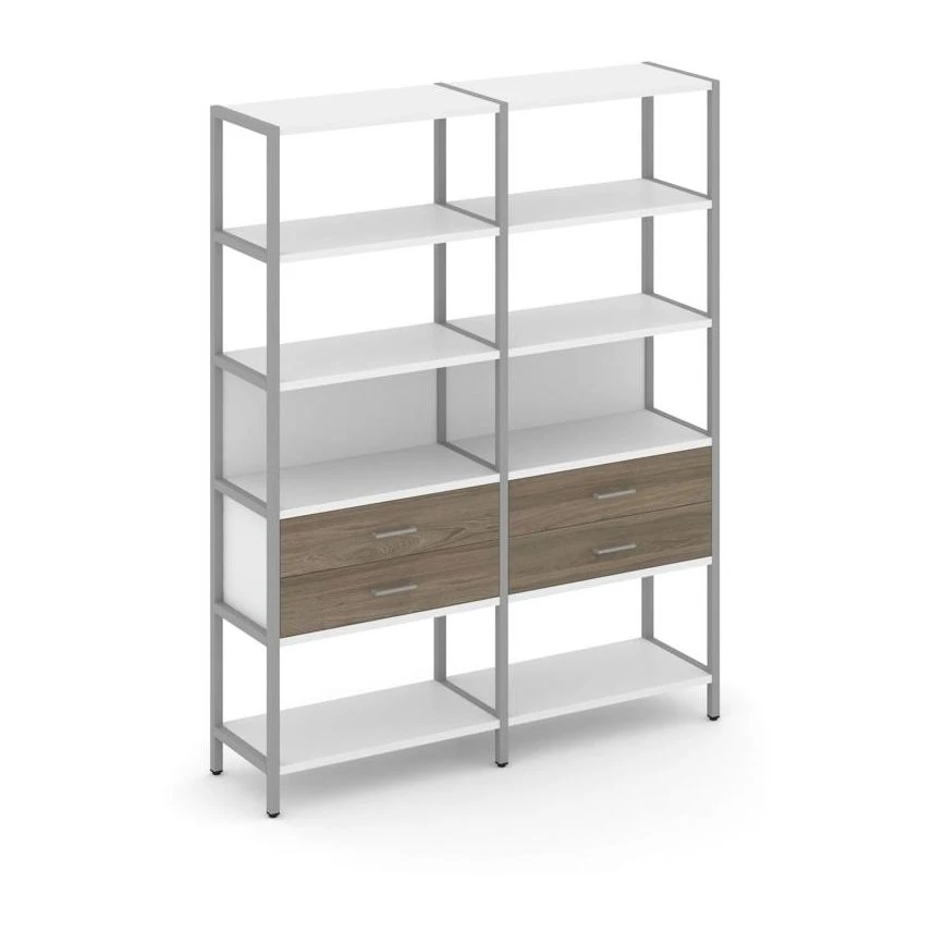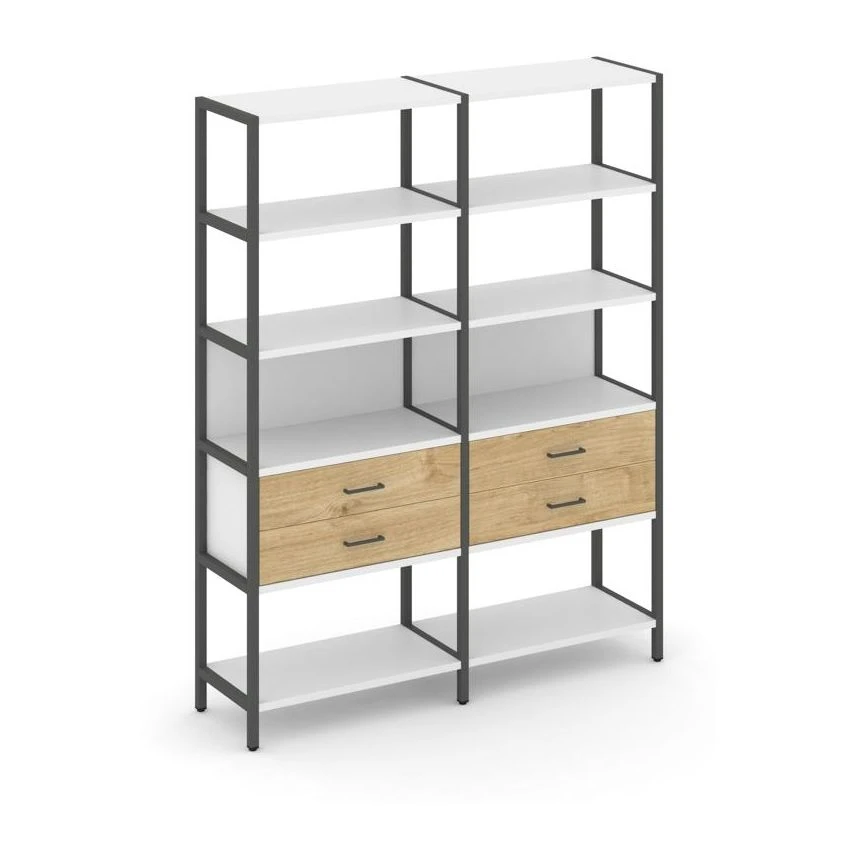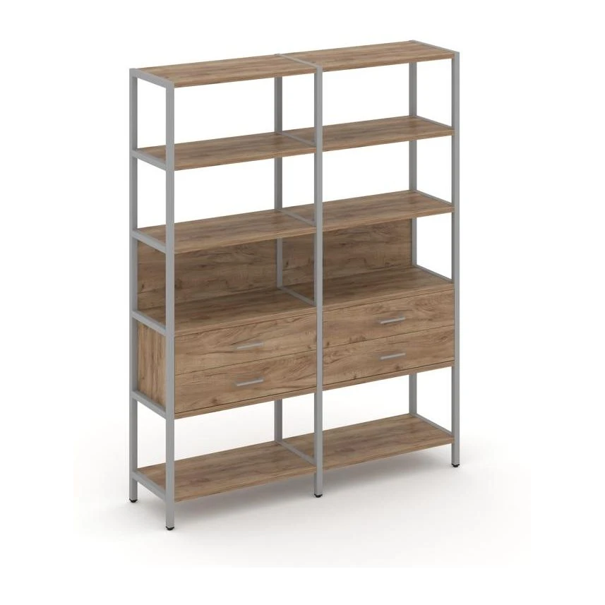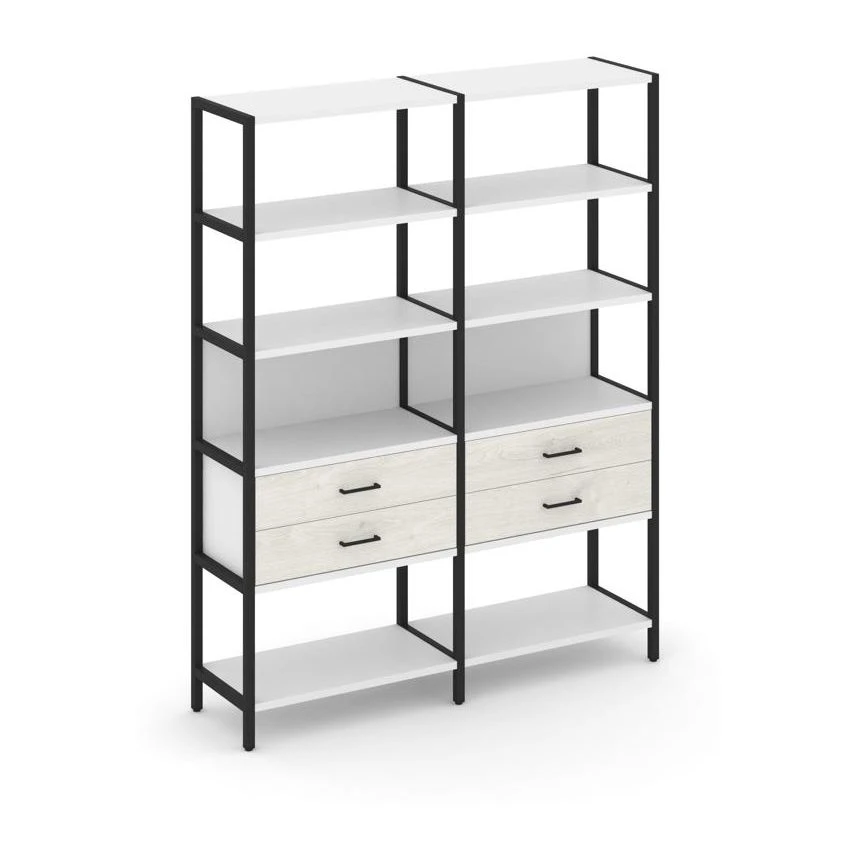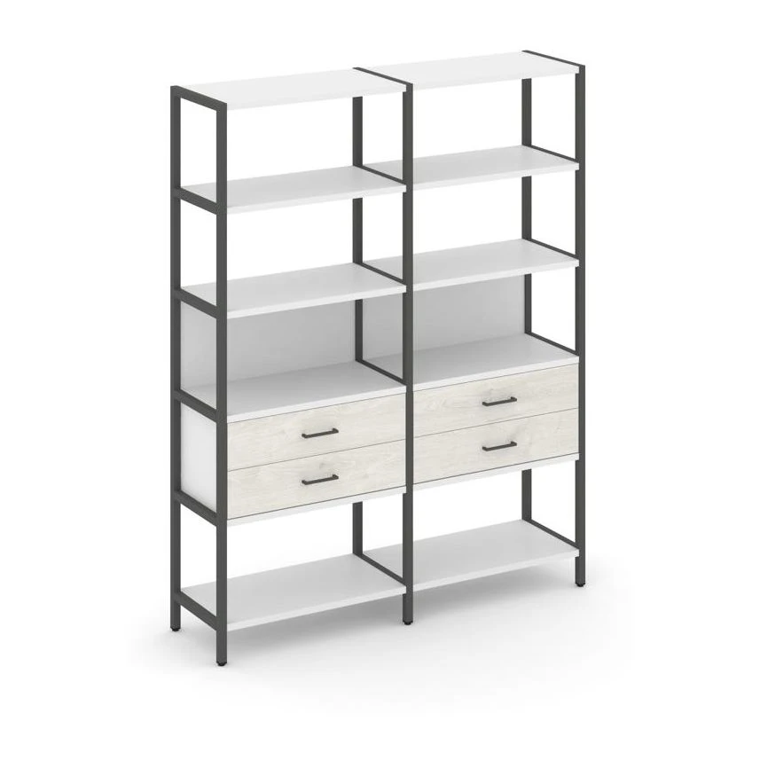 - Двухсекционный стеллаж пятиярусный с ящиками 1590х400х1980 Шелф Систем / Shelf System