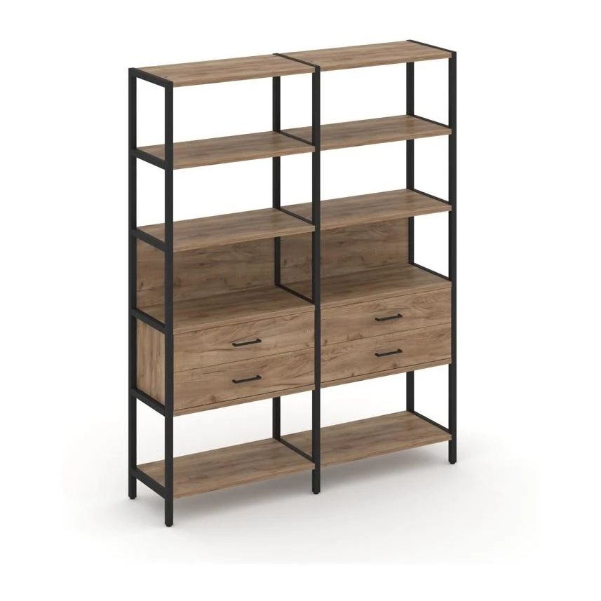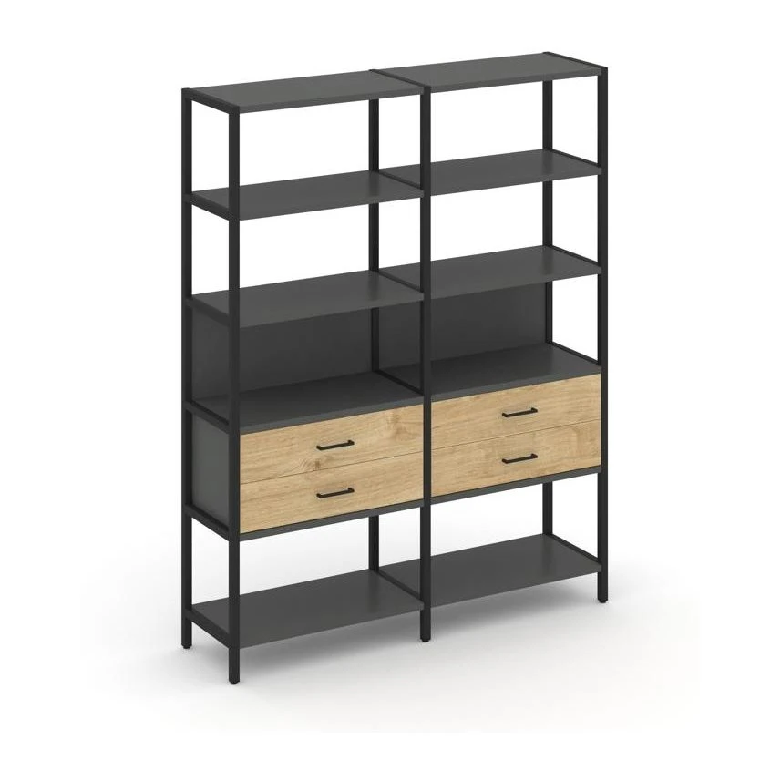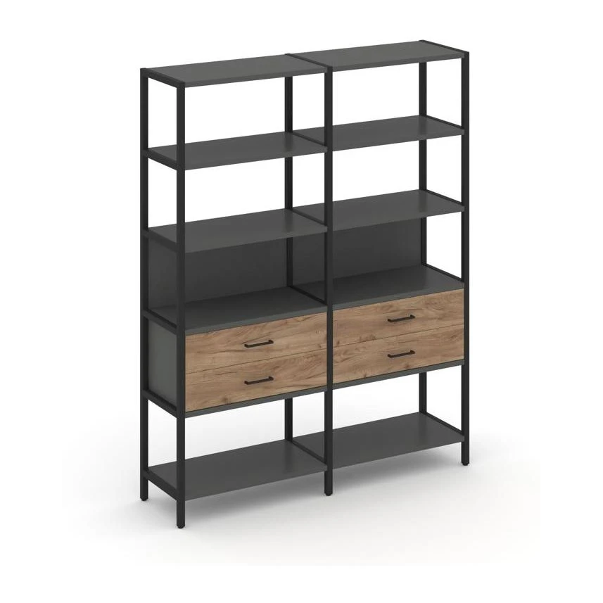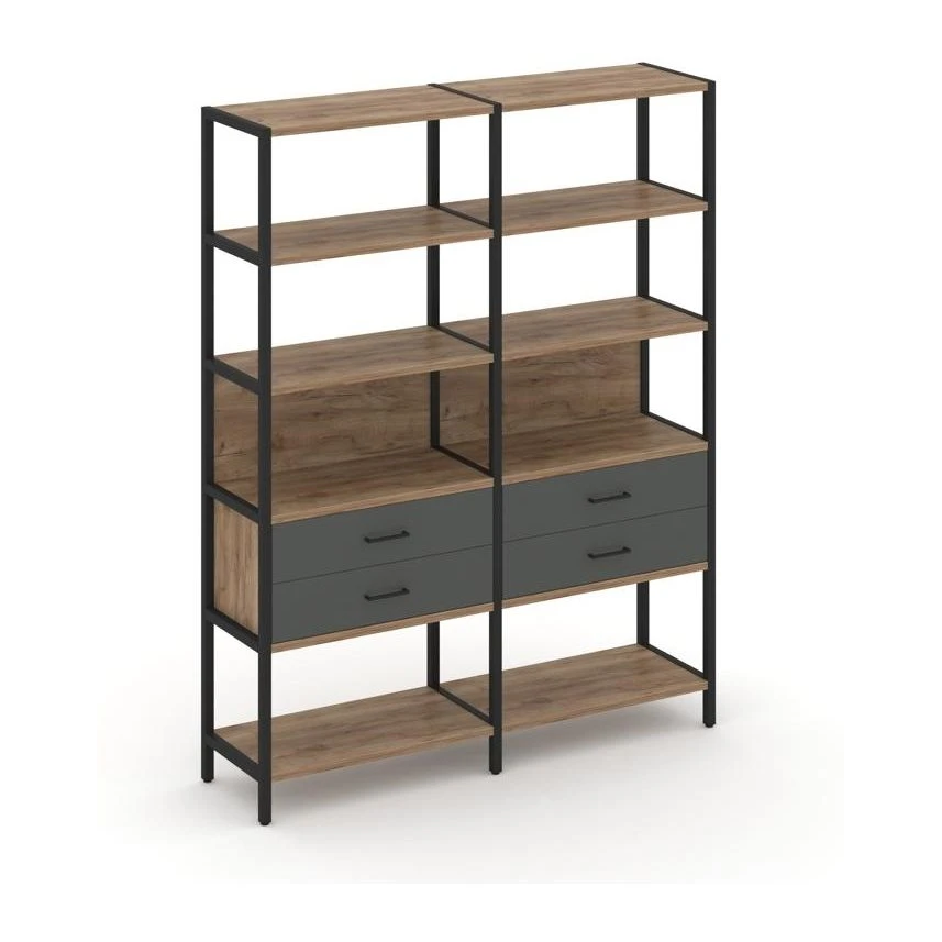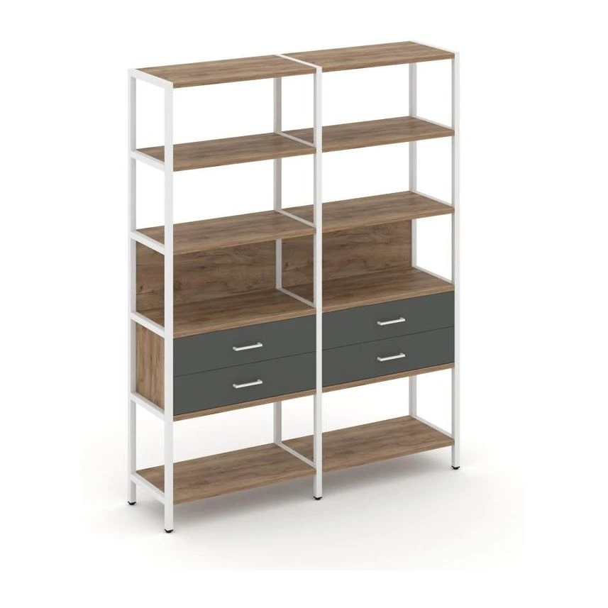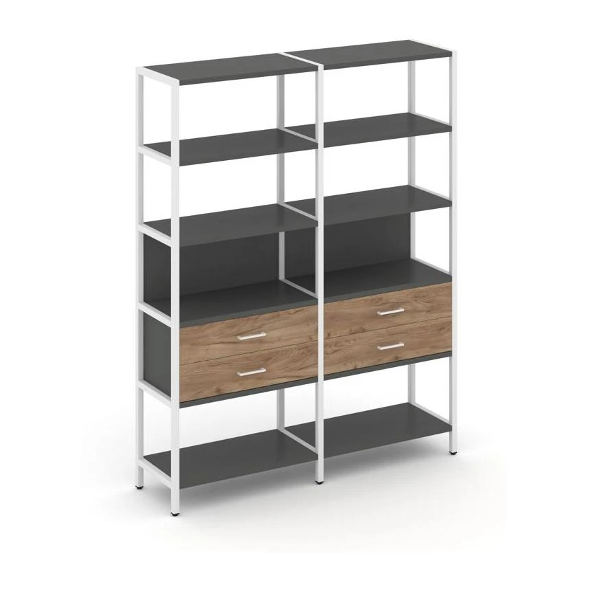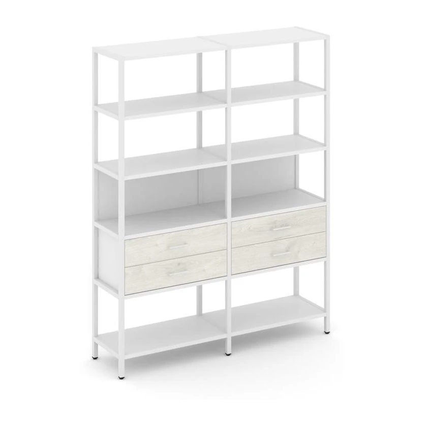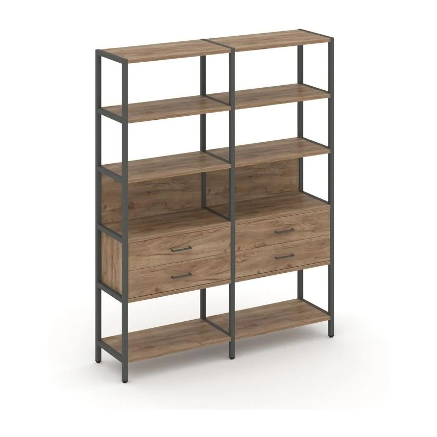 - Двухсекционный стеллаж пятиярусный с ящиками 1590х400х1980 Шелф Систем / Shelf System