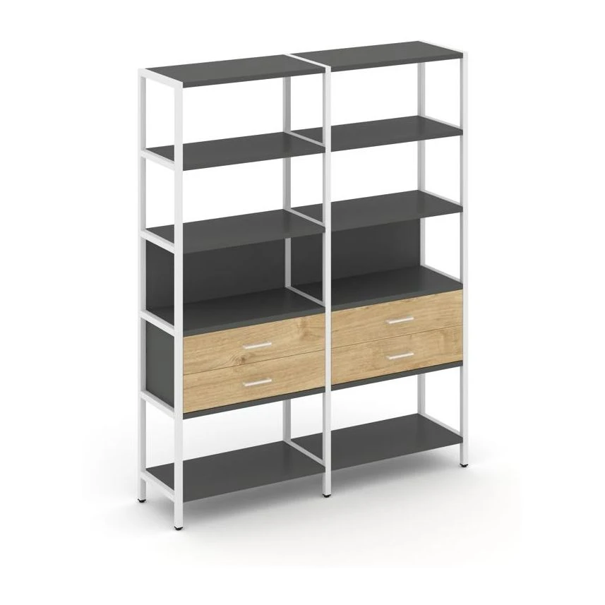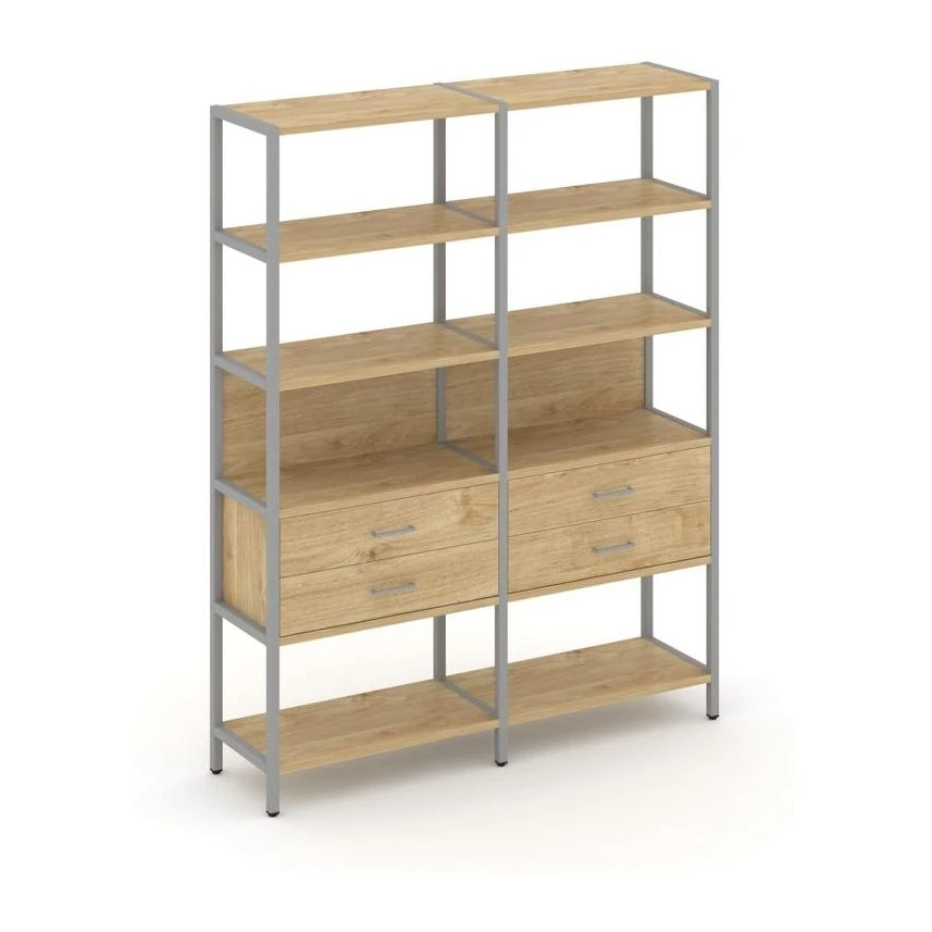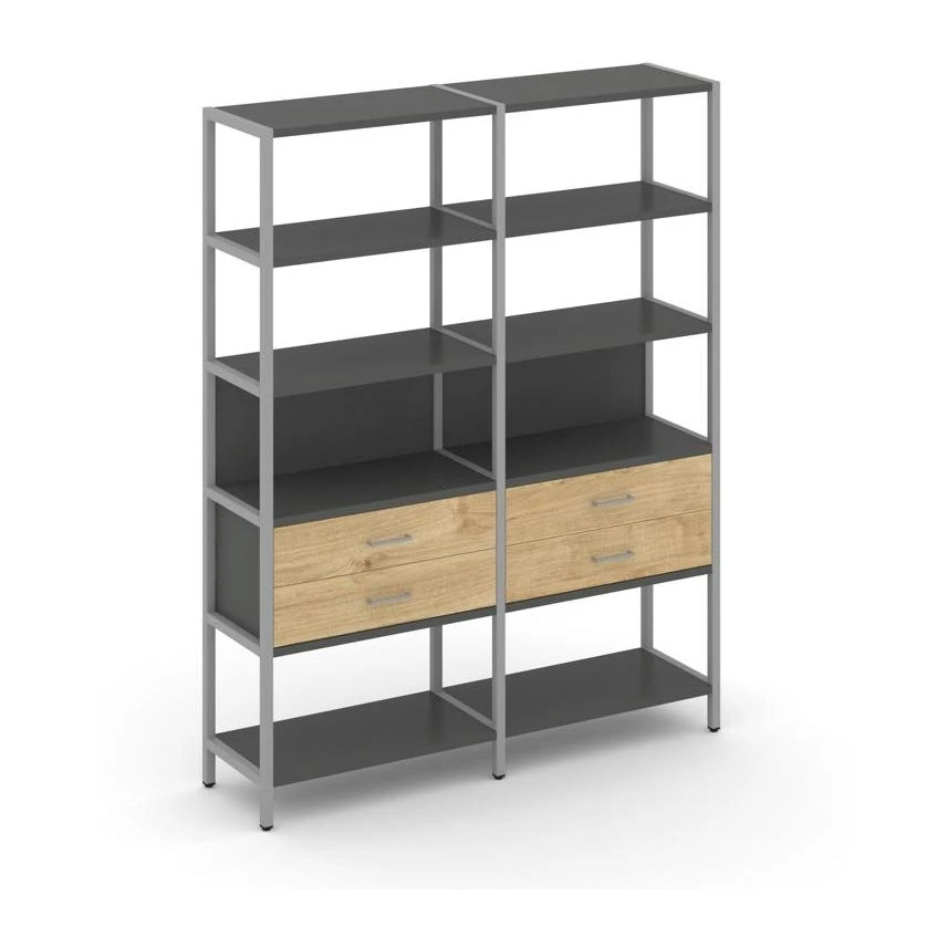 Двухсекционный стеллаж пятиярусный с ящиками 1590х400х1980 Шелф Систем / Shelf System