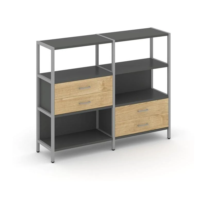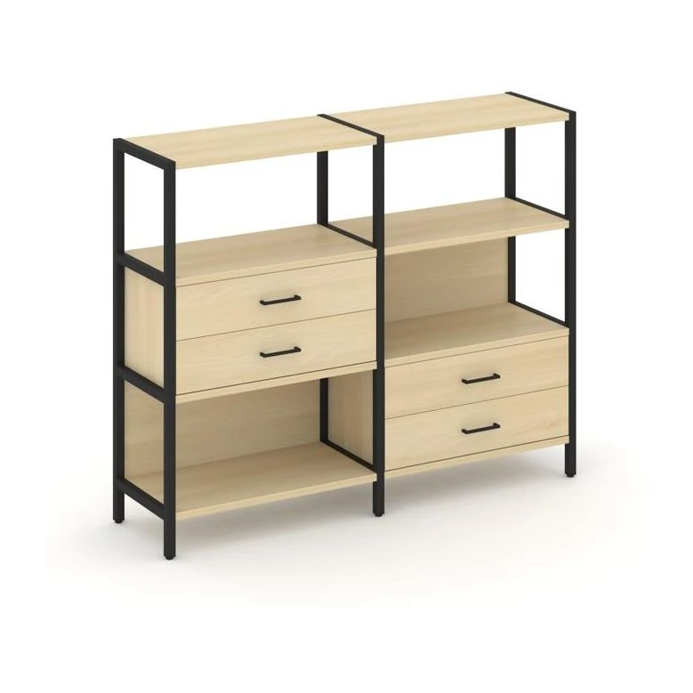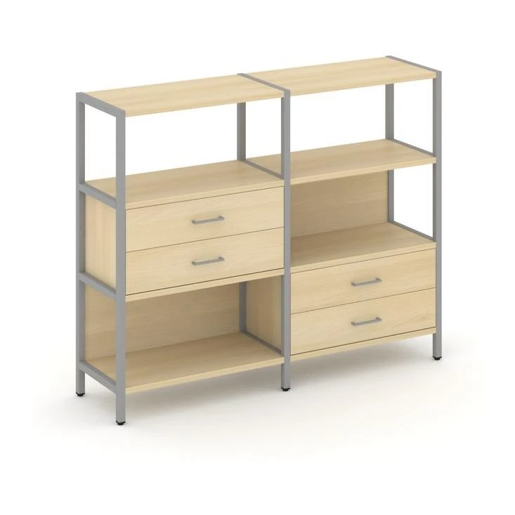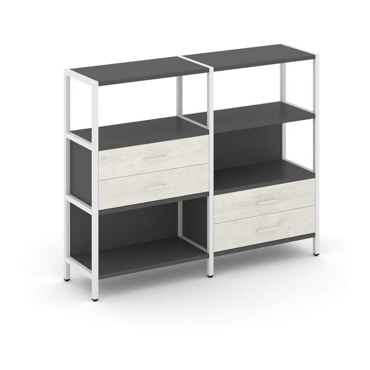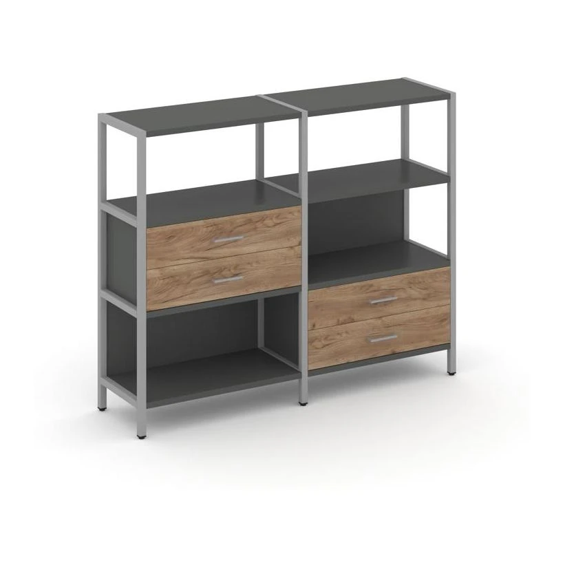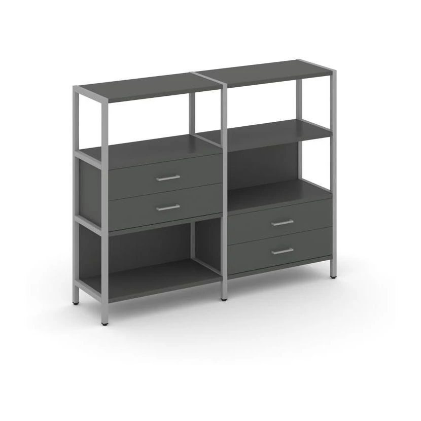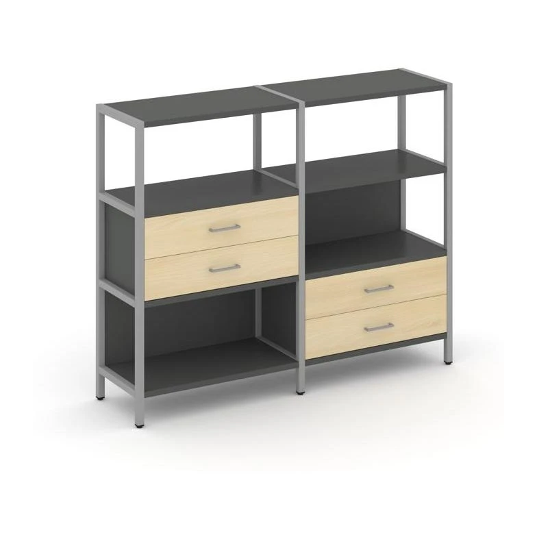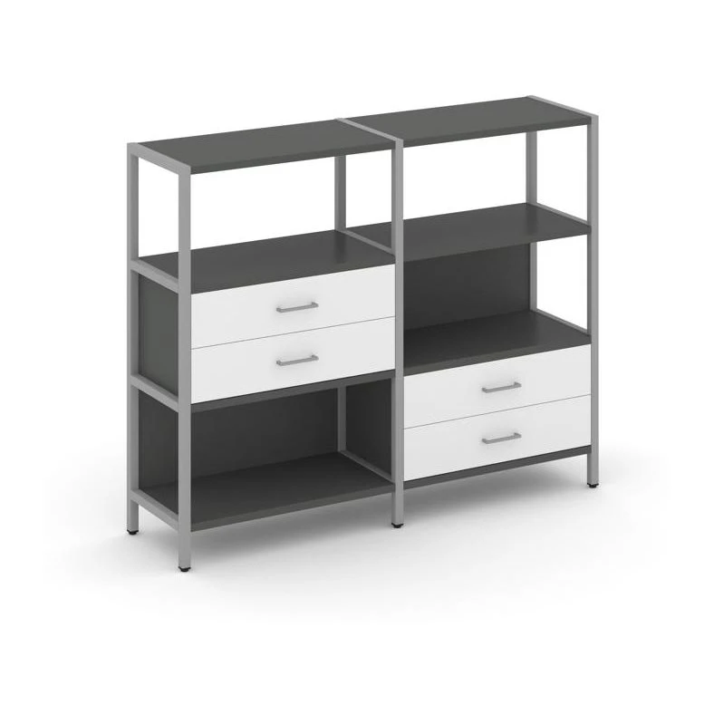 - Двухсекционный стеллаж трехярусный с ящиками на двух ярусах 1590х400х1246 Шелф Систем / Shelf System
