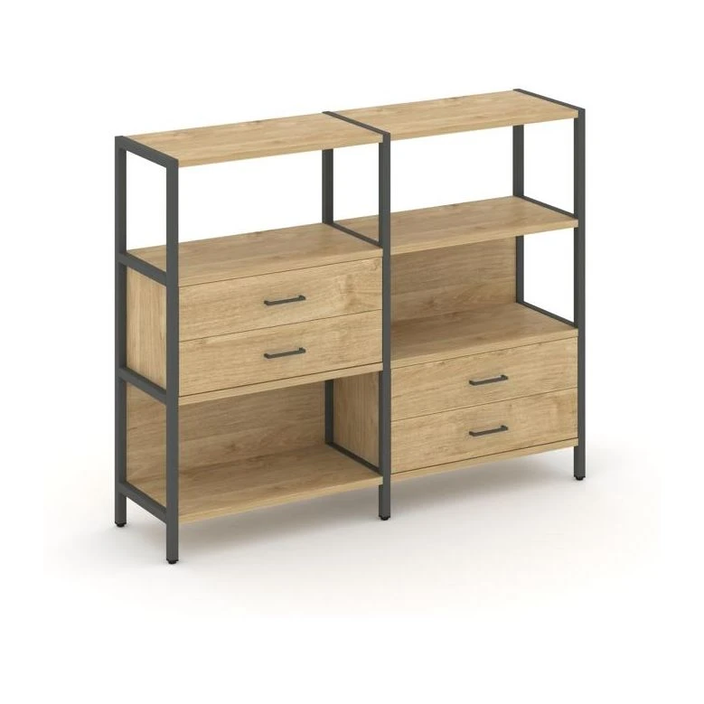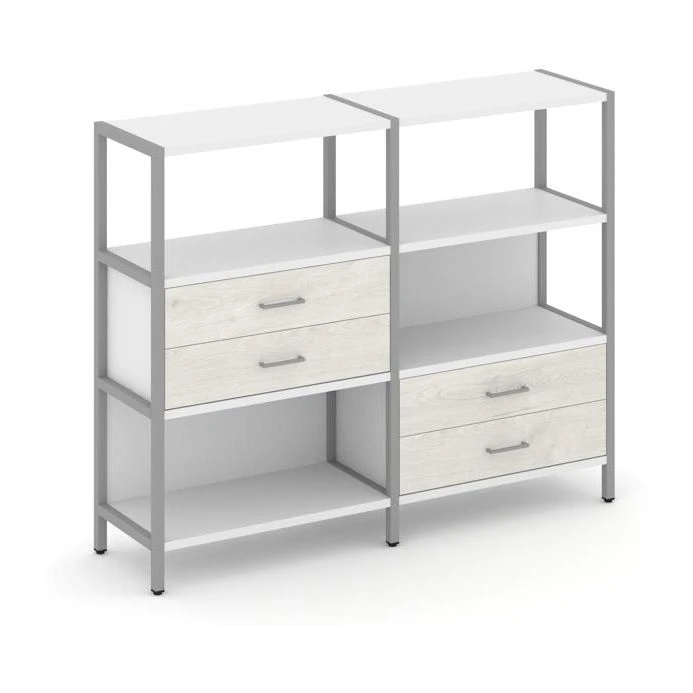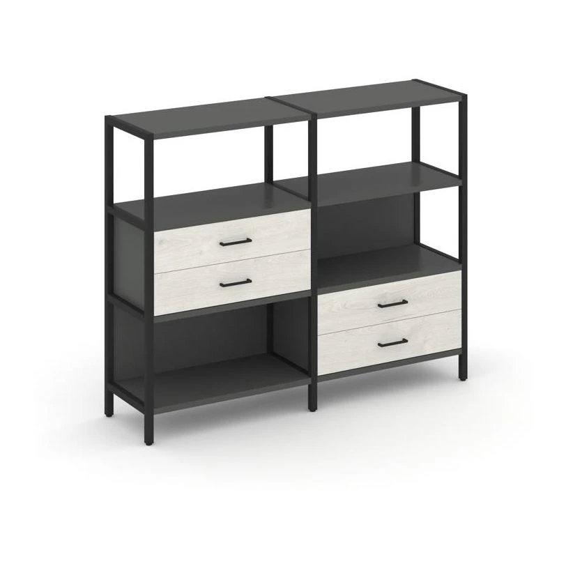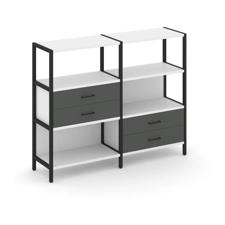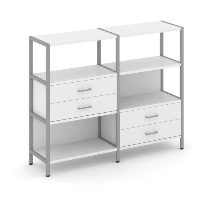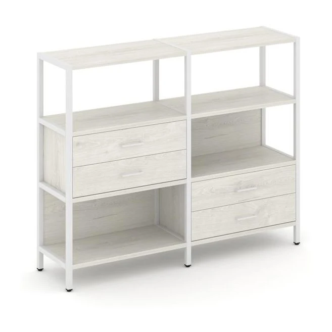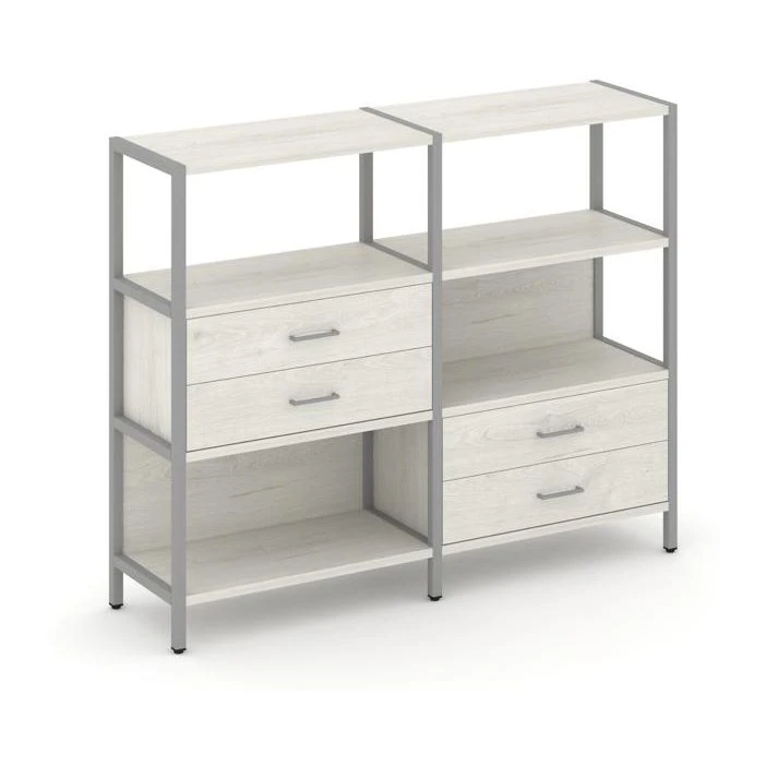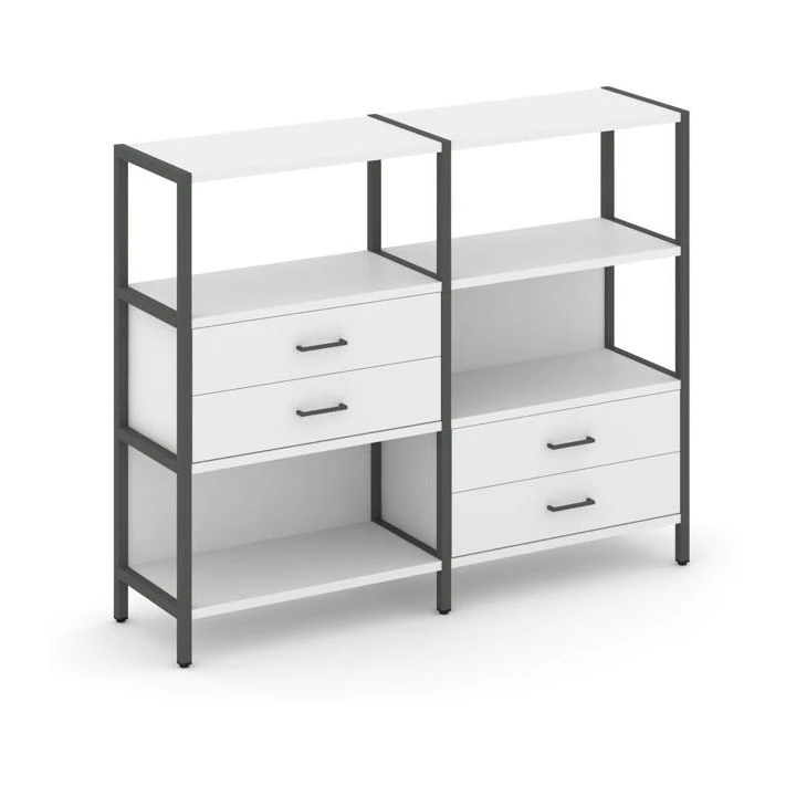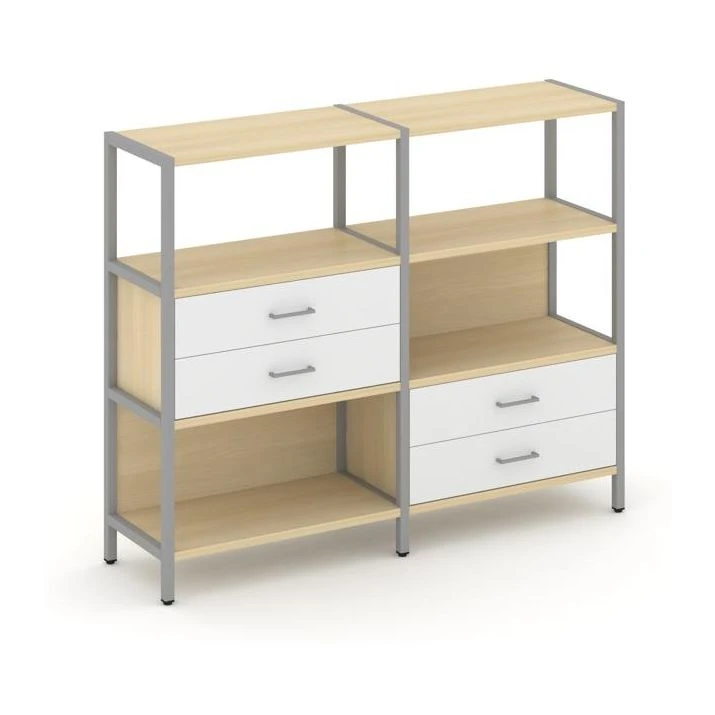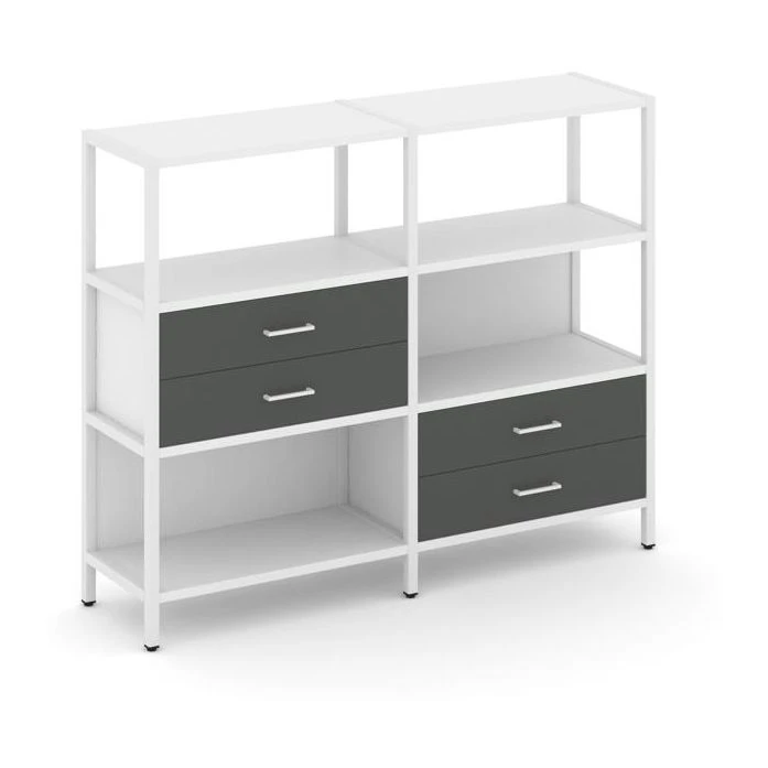 - Двухсекционный стеллаж трехярусный с ящиками на двух ярусах 1590х400х1246 Шелф Систем / Shelf System