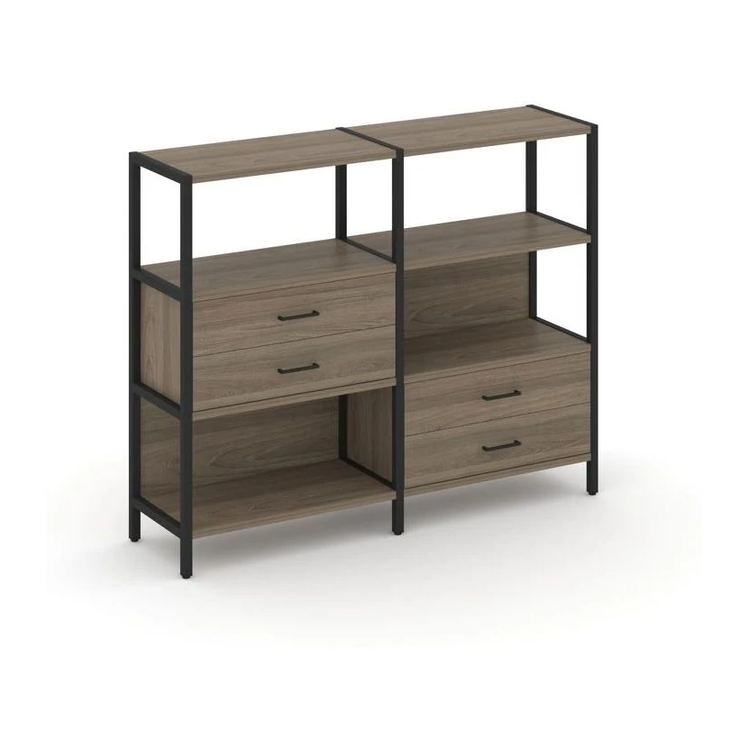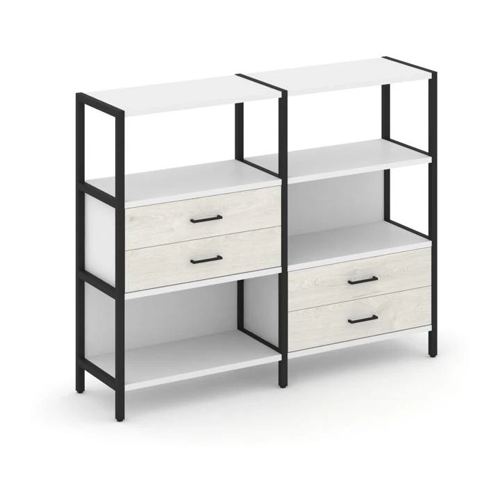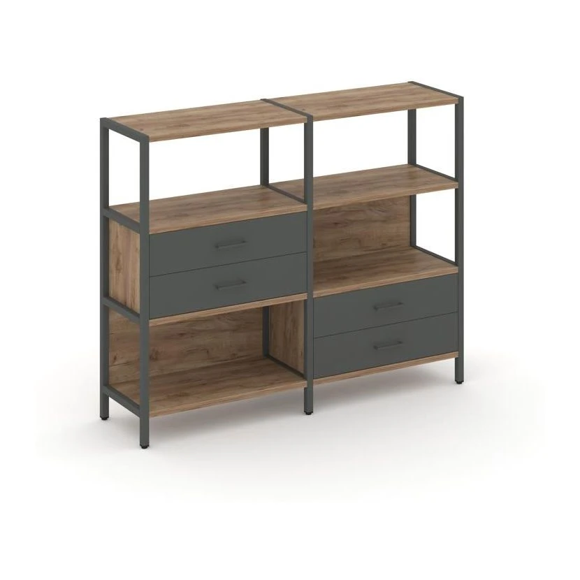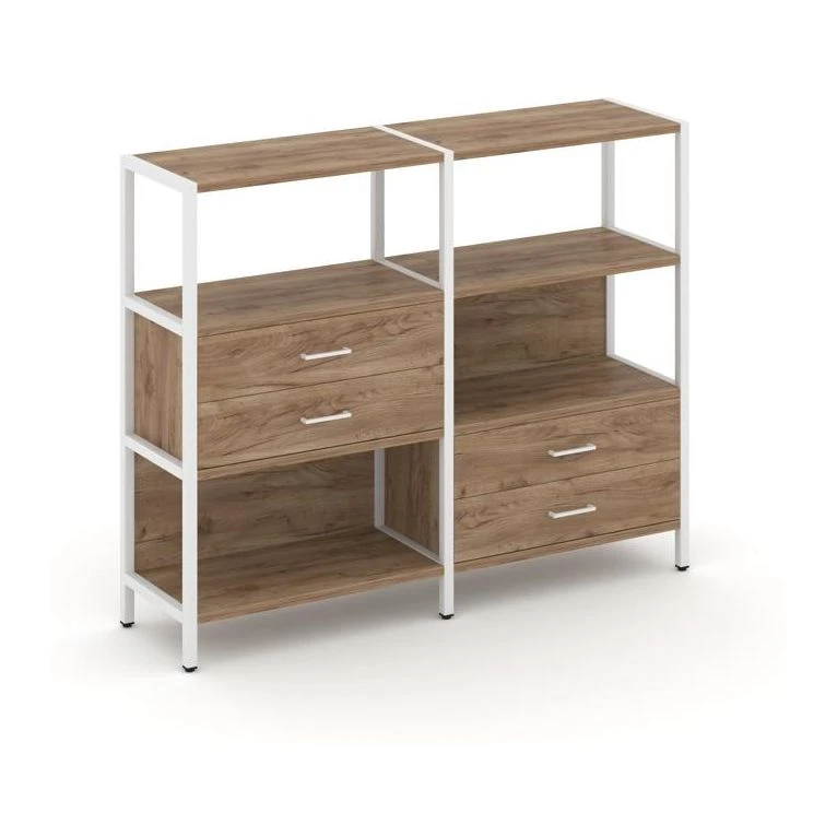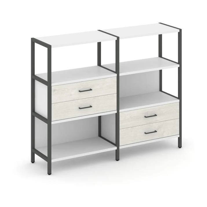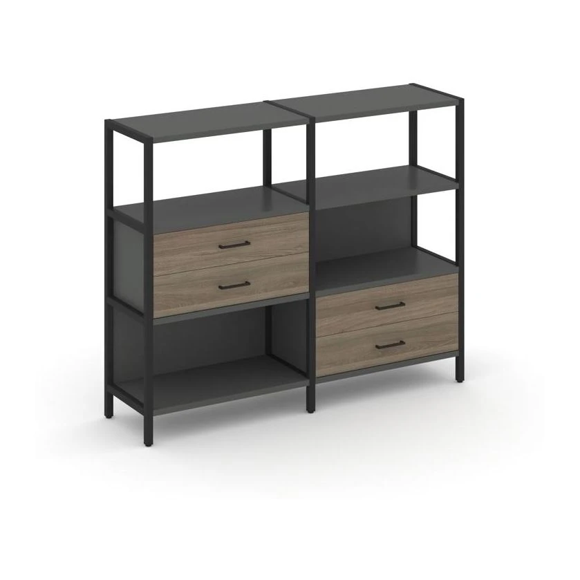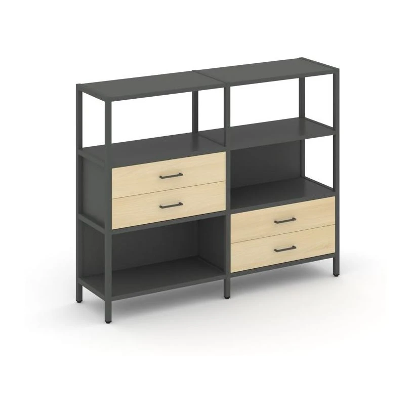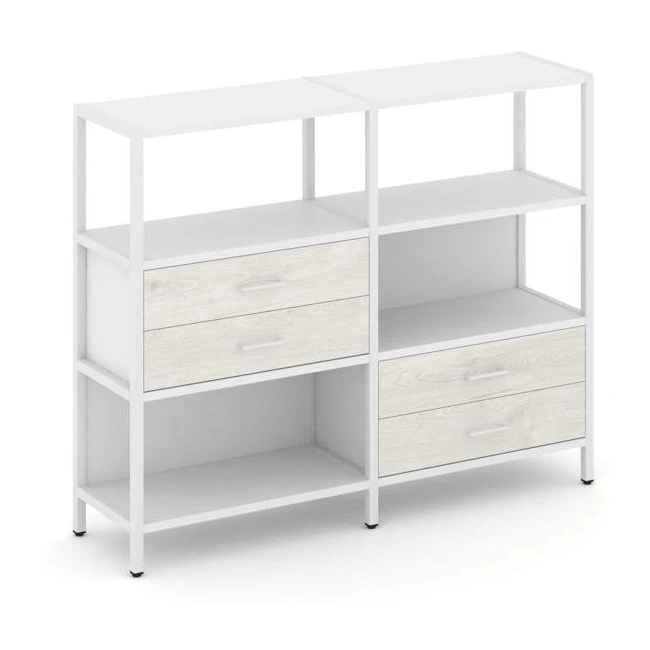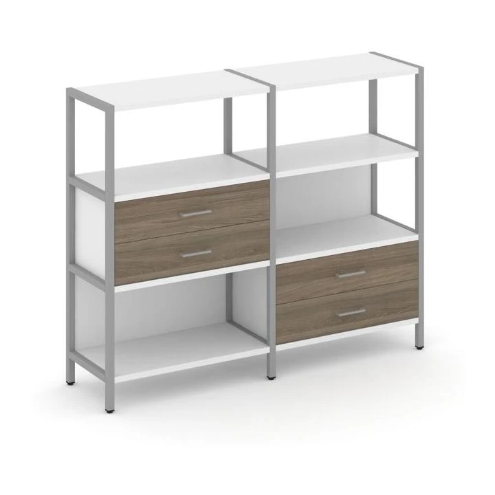 - Двухсекционный стеллаж трехярусный с ящиками на двух ярусах 1590х400х1246 Шелф Систем / Shelf System