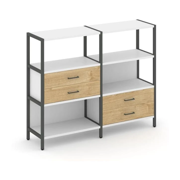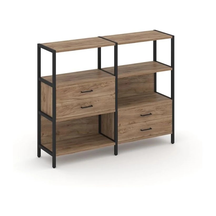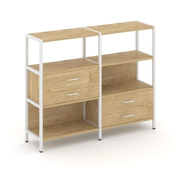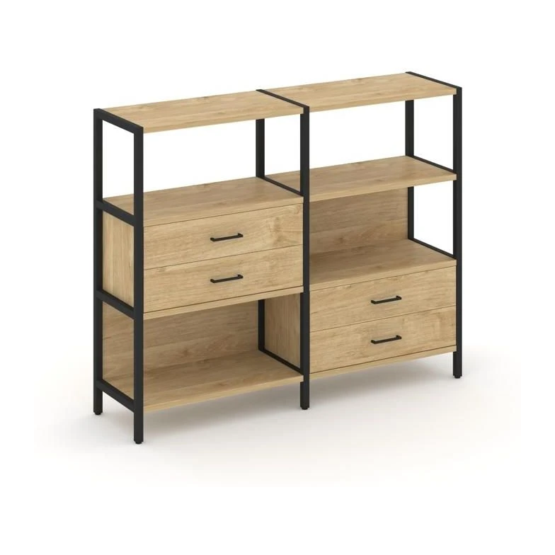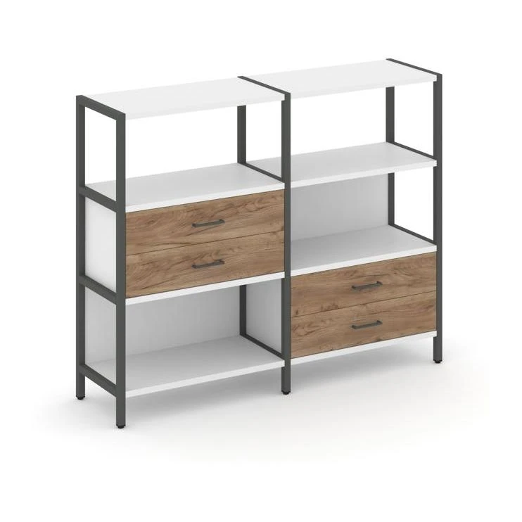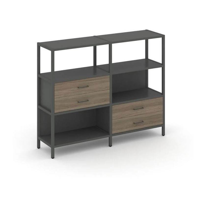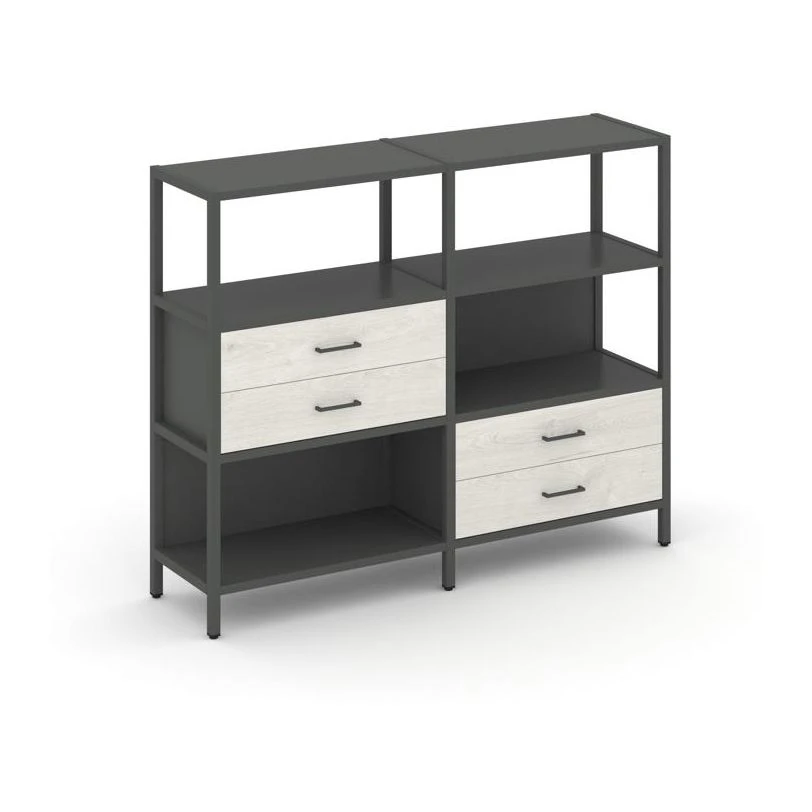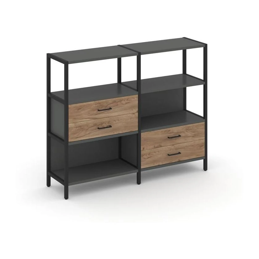 - Двухсекционный стеллаж трехярусный с ящиками на двух ярусах 1590х400х1246 Шелф Систем / Shelf System