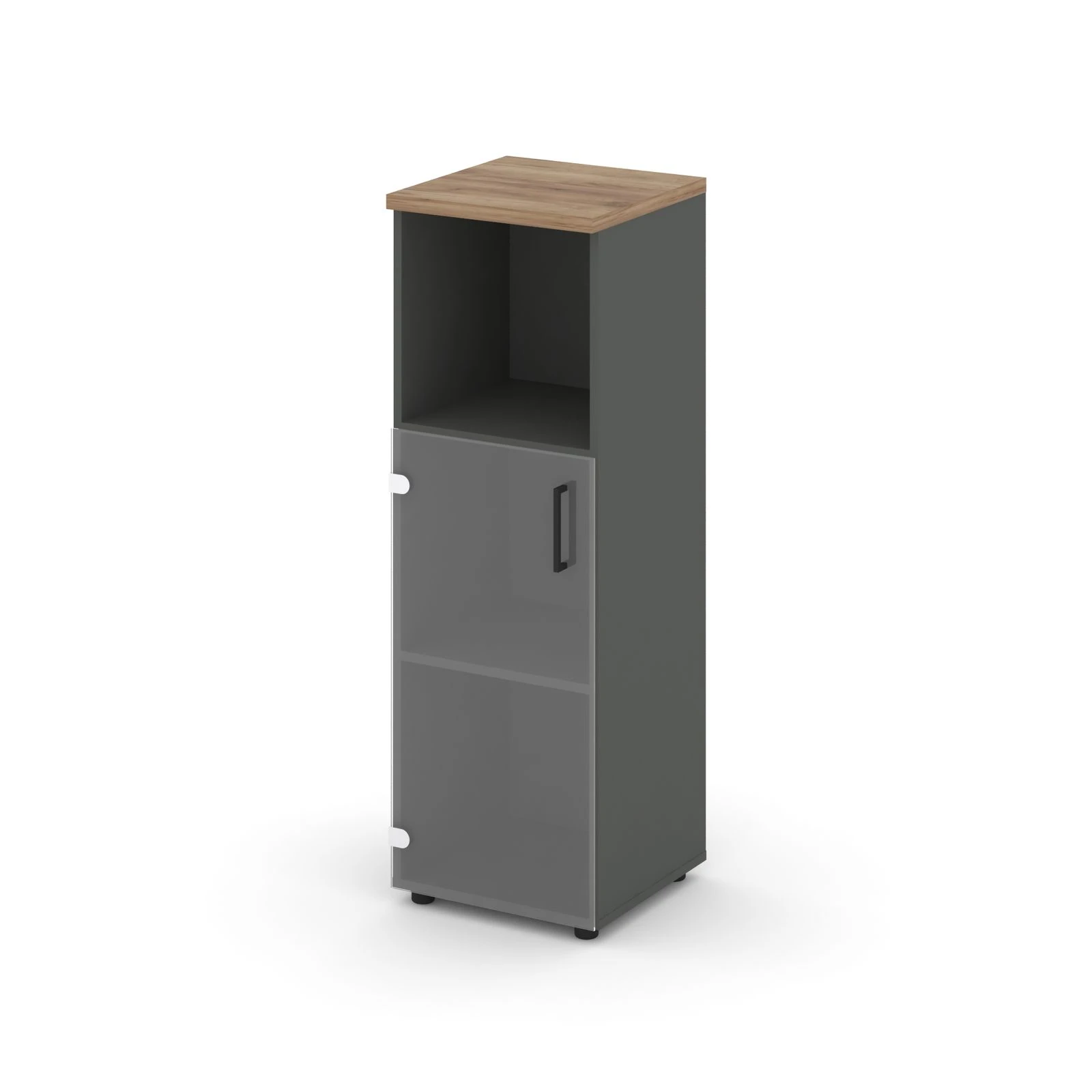 Шкаф средний узкий левый прозр. стекло с нишей 400x400x1203 Стайл Проджект / Style Project