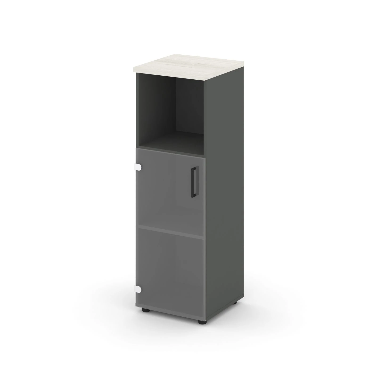 Шкаф средний узкий левый прозр. стекло с нишей 400x400x1203 зад. стенка HDF Стайл Проджект / Style Project
