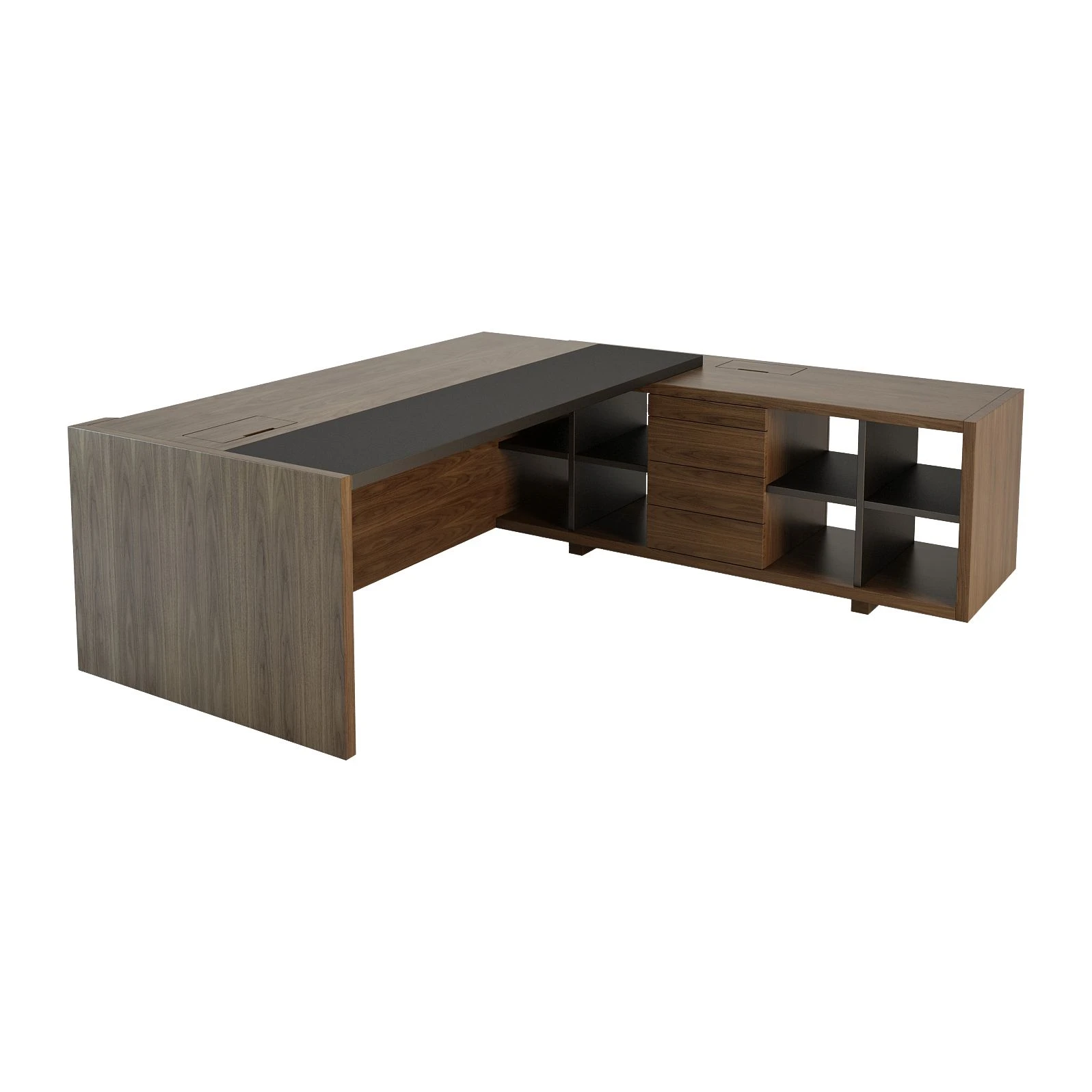 Стол руководителя с модулем полуглянцевый/лакированный, кожа, правый 2340х2265х750 Freeport