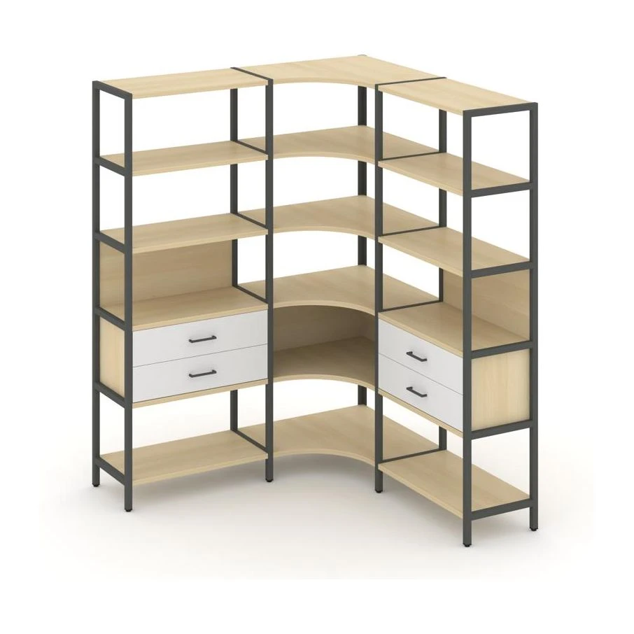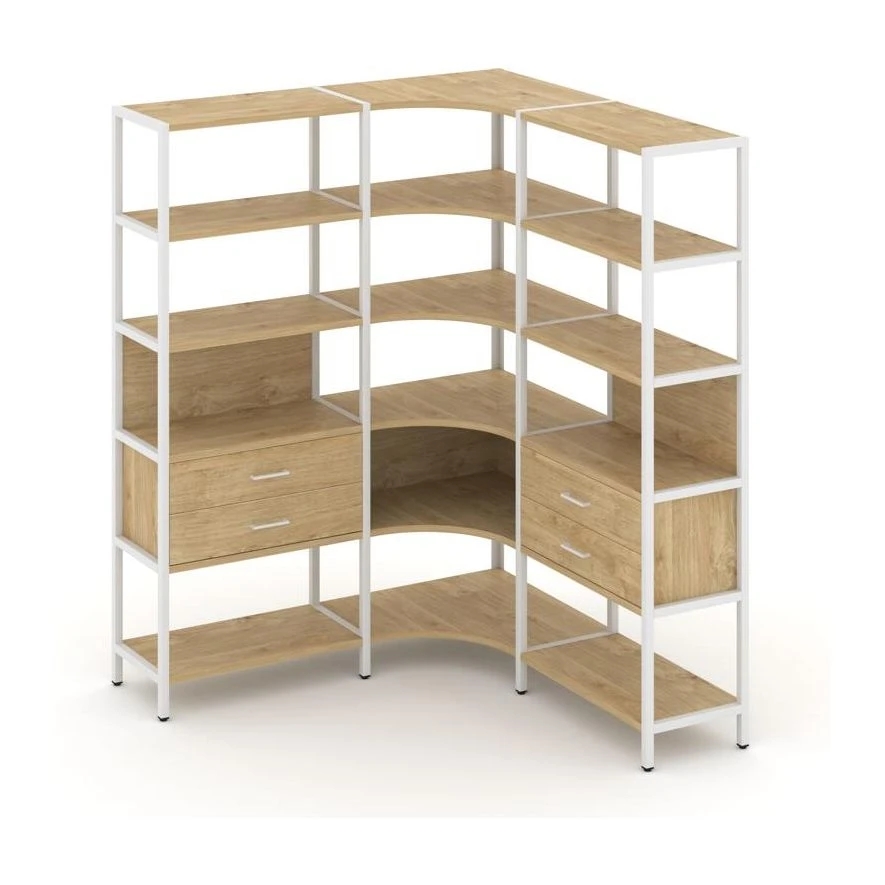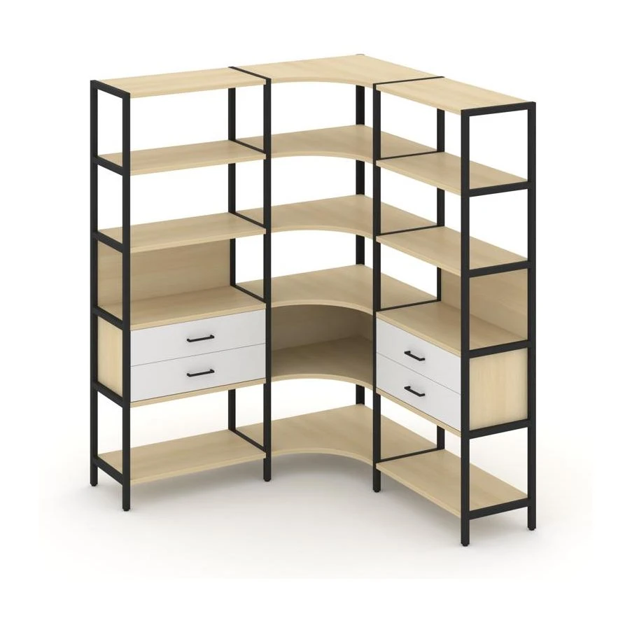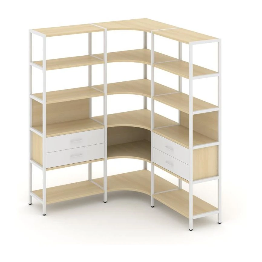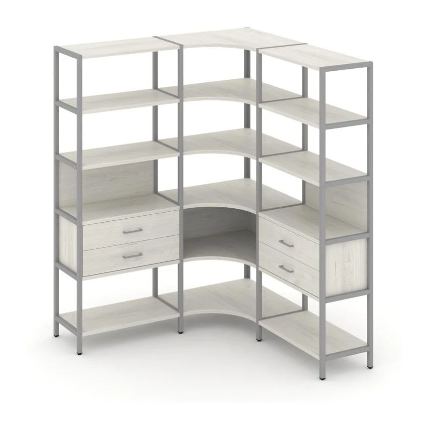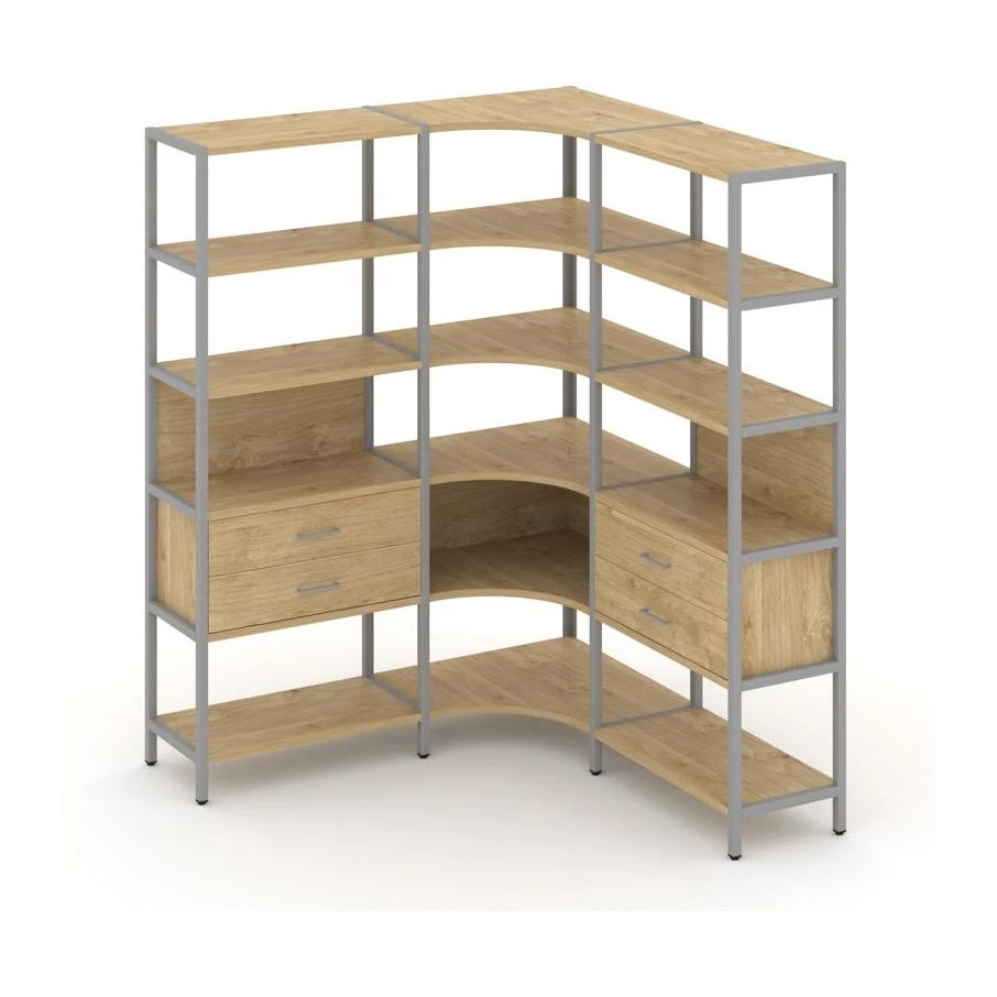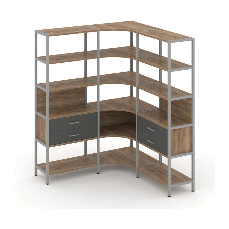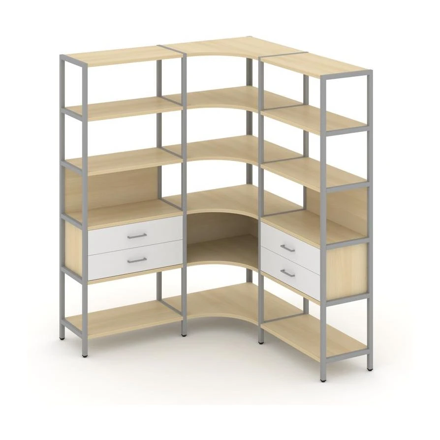 Трехсекционный угловой стеллаж пятиярусный с ящиками 1590х1590х1980 Шелф Систем / Shelf System