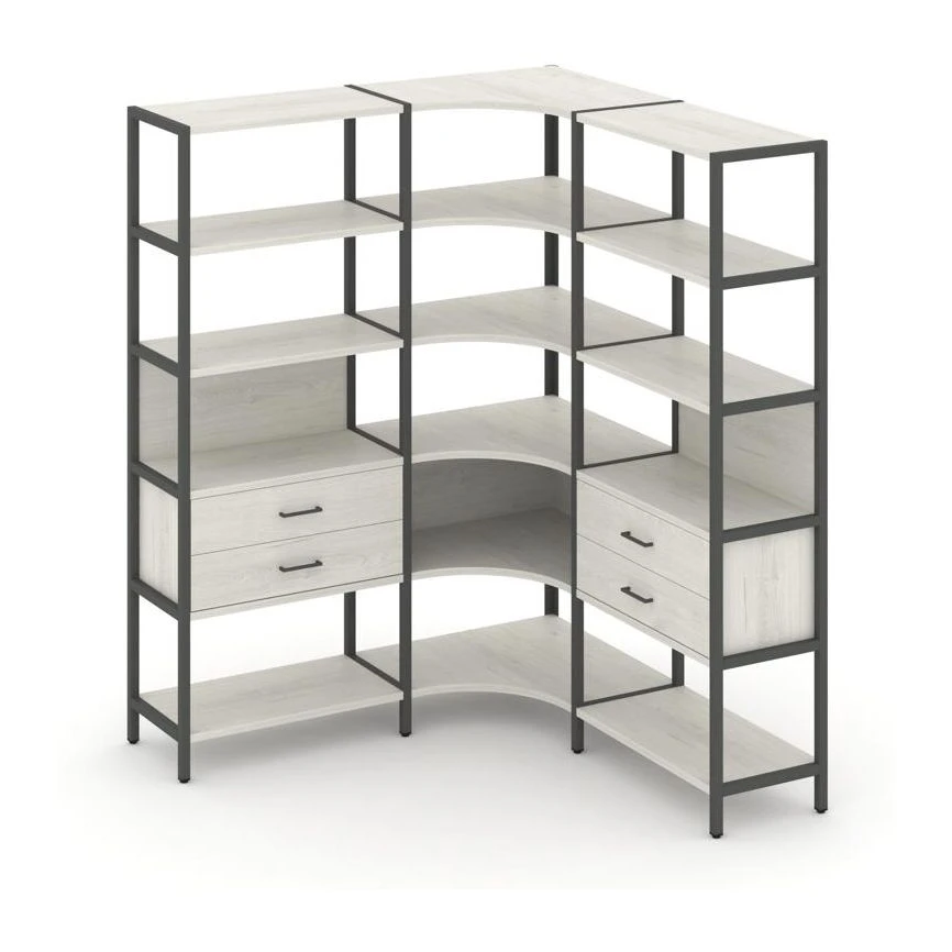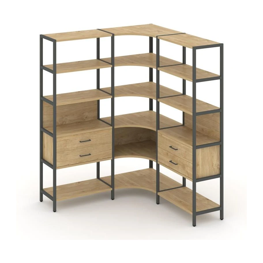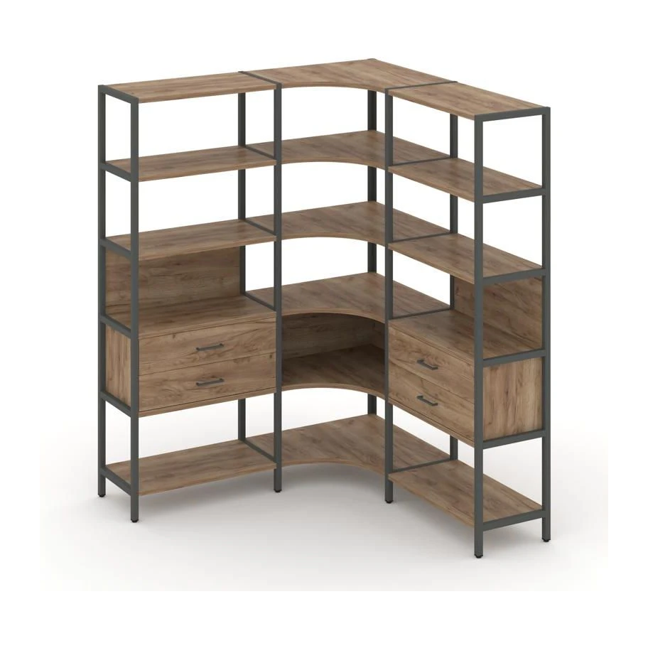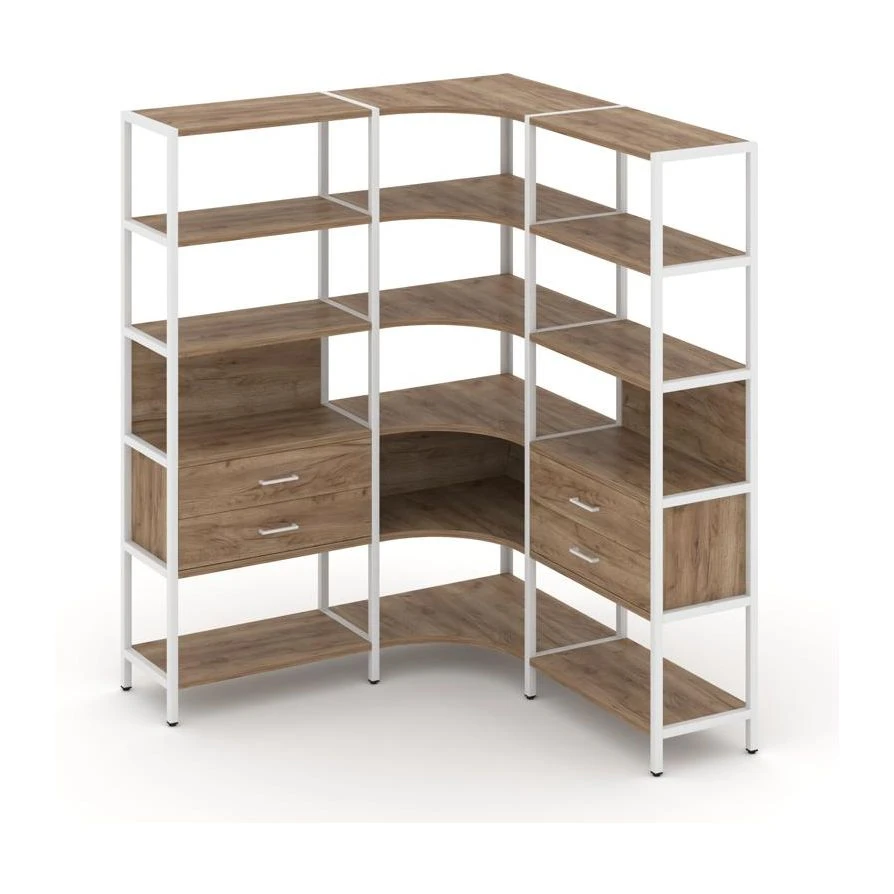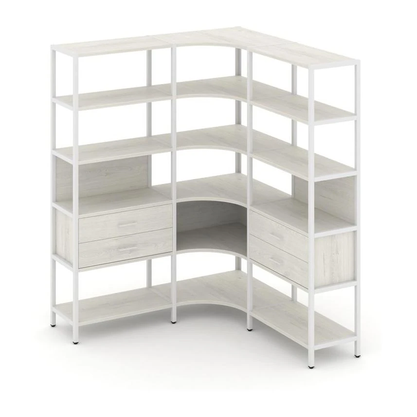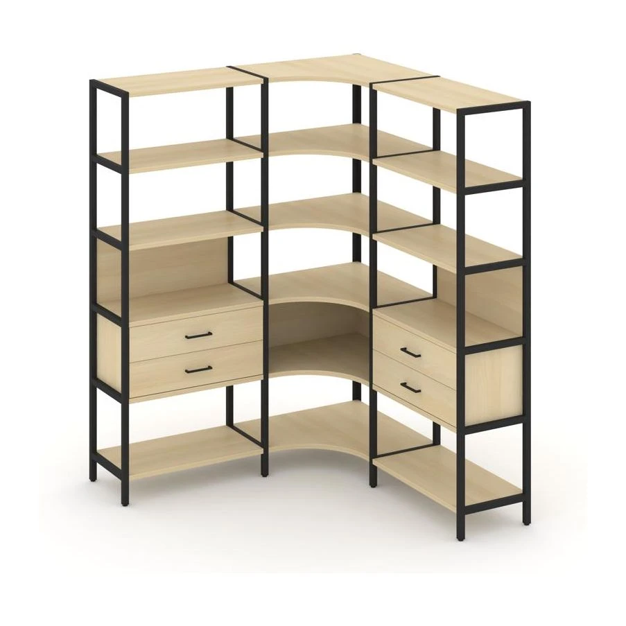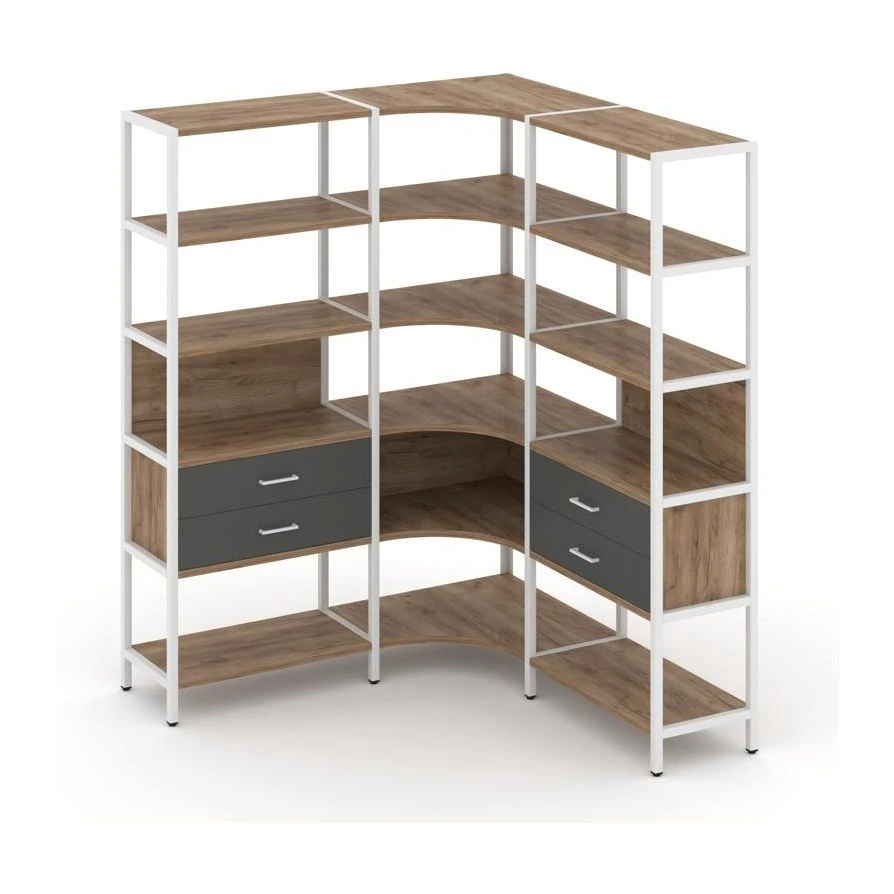 Трехсекционный угловой стеллаж пятиярусный с ящиками 1590х1590х1980 Шелф Систем / Shelf System