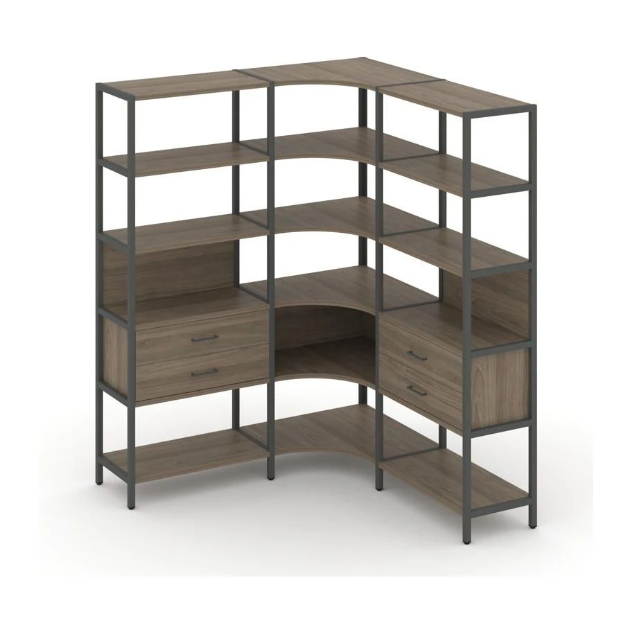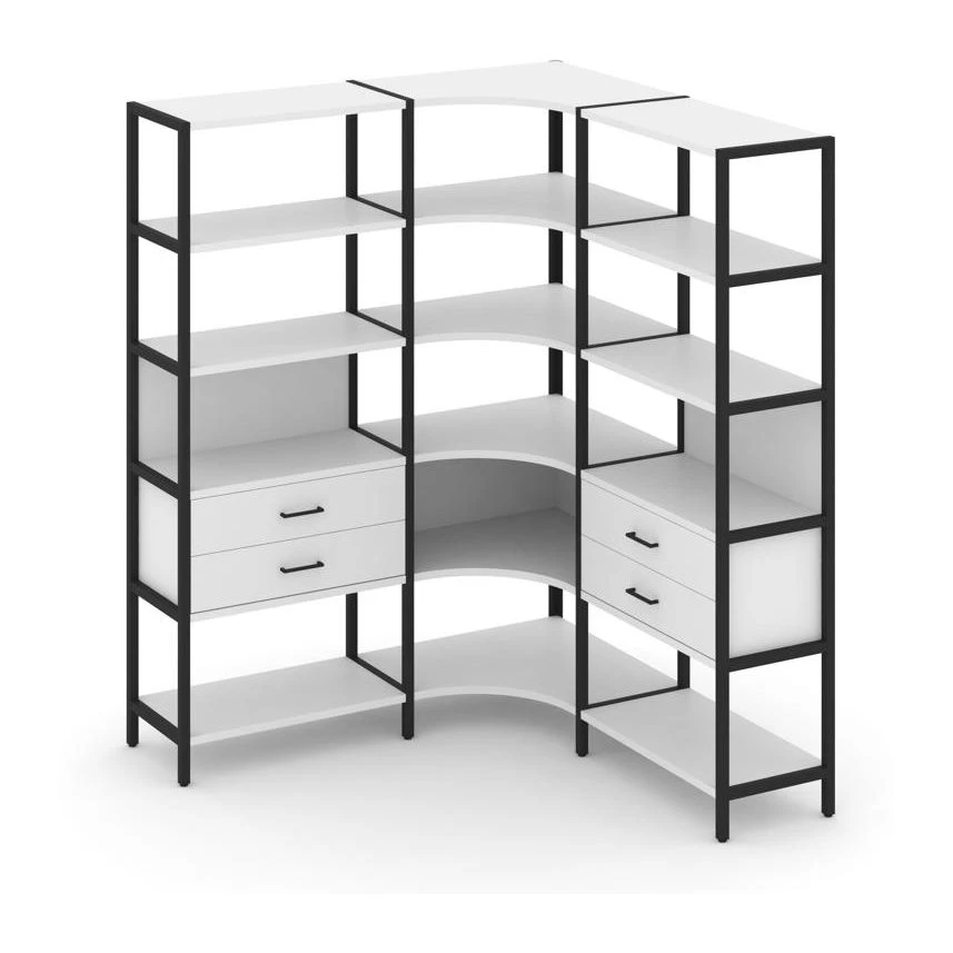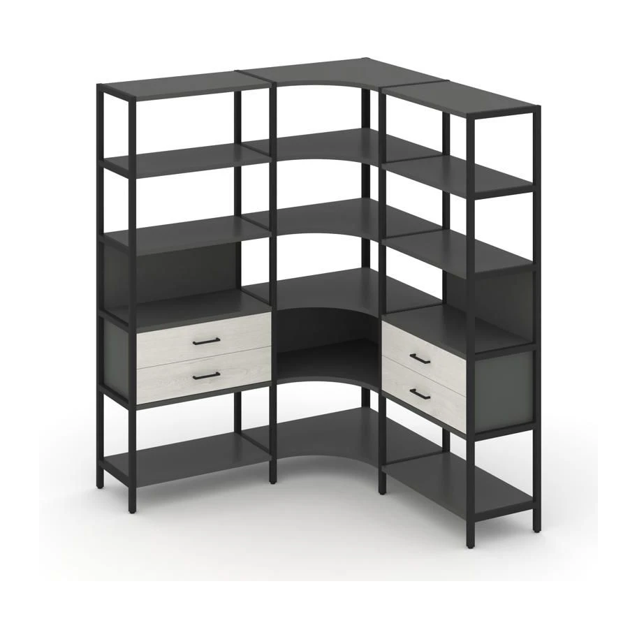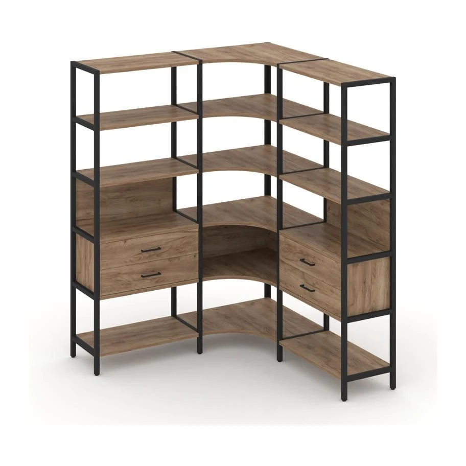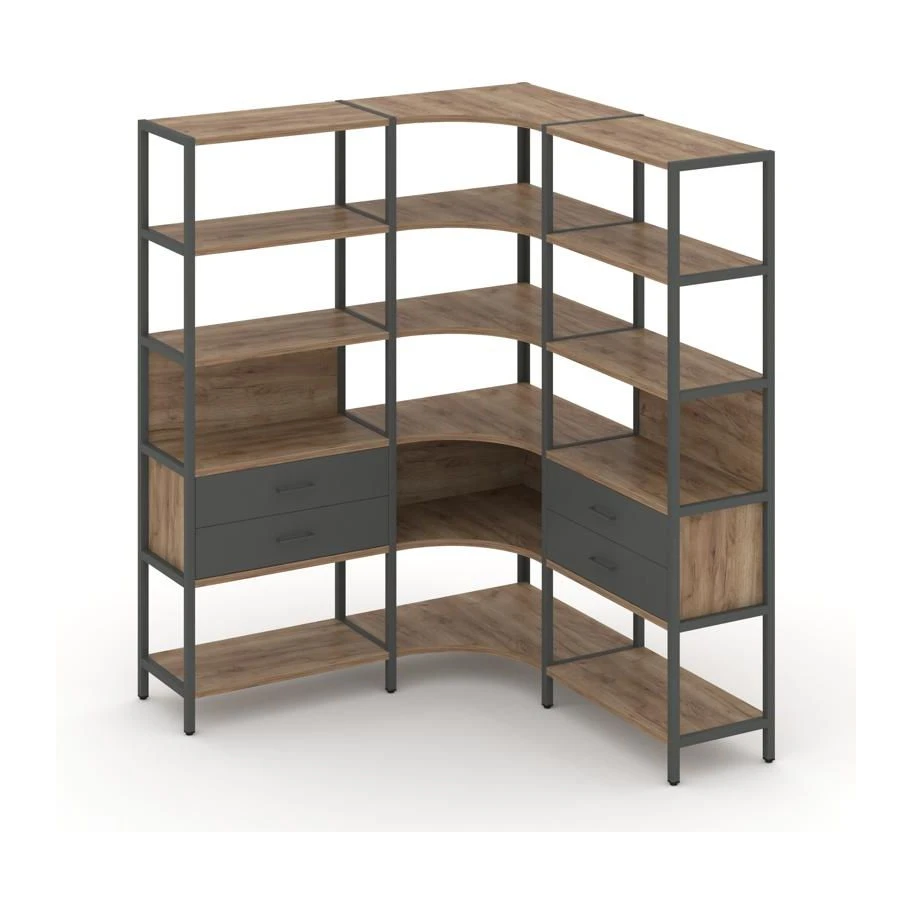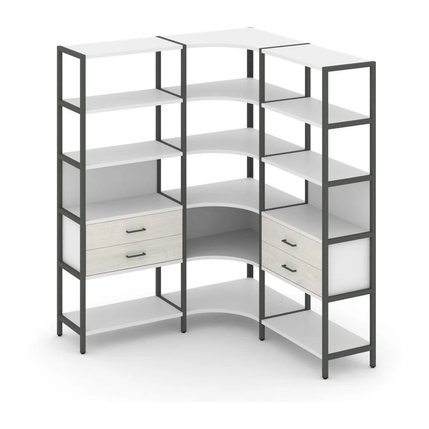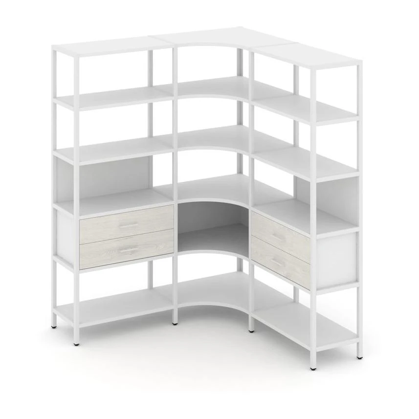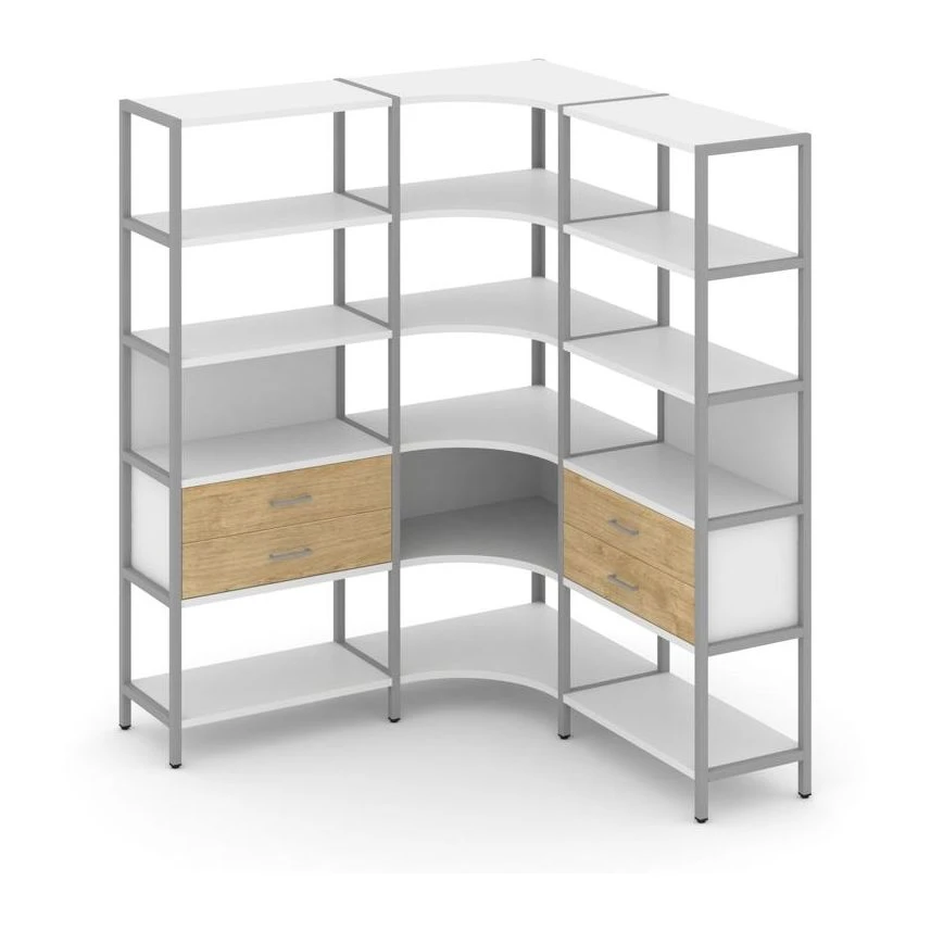 Трехсекционный угловой стеллаж пятиярусный с ящиками 1590х1590х1980 Шелф Систем / Shelf System