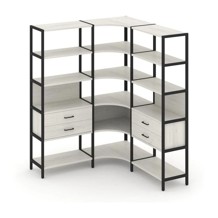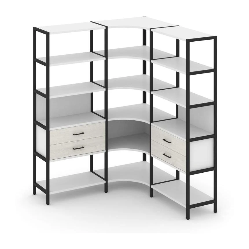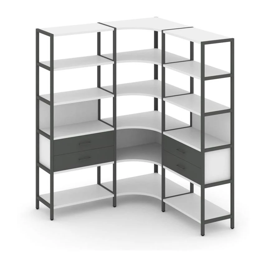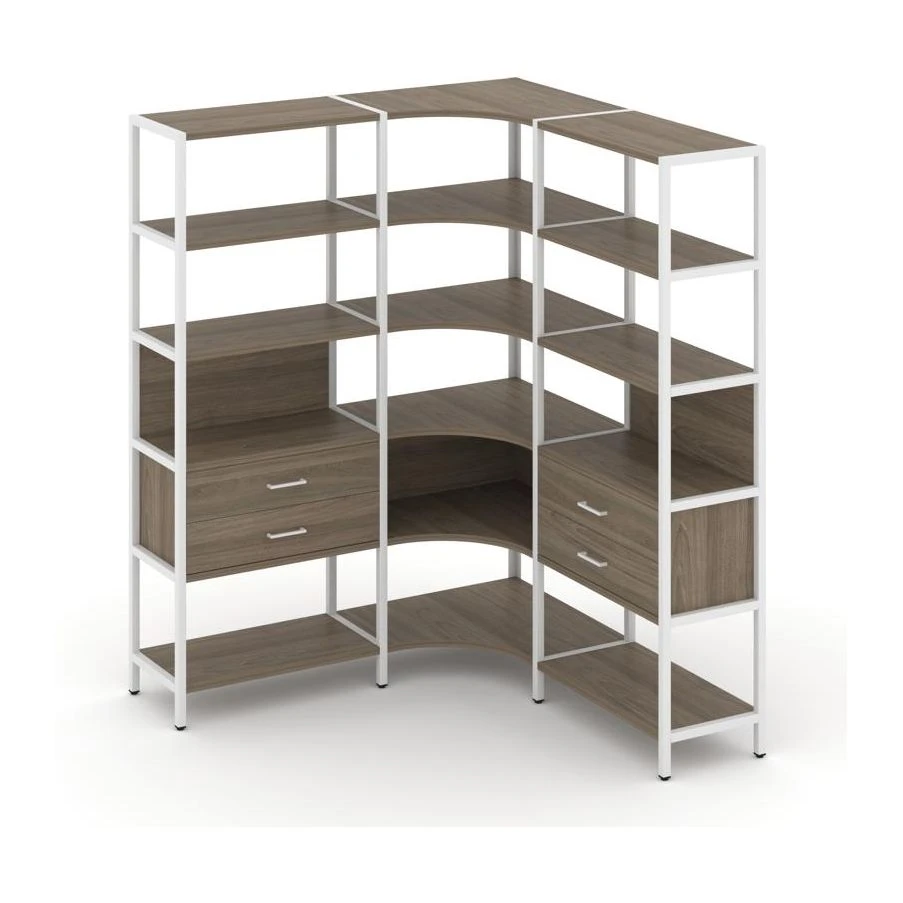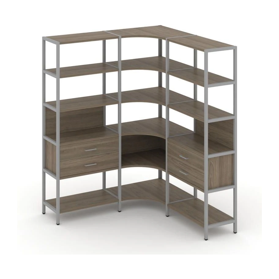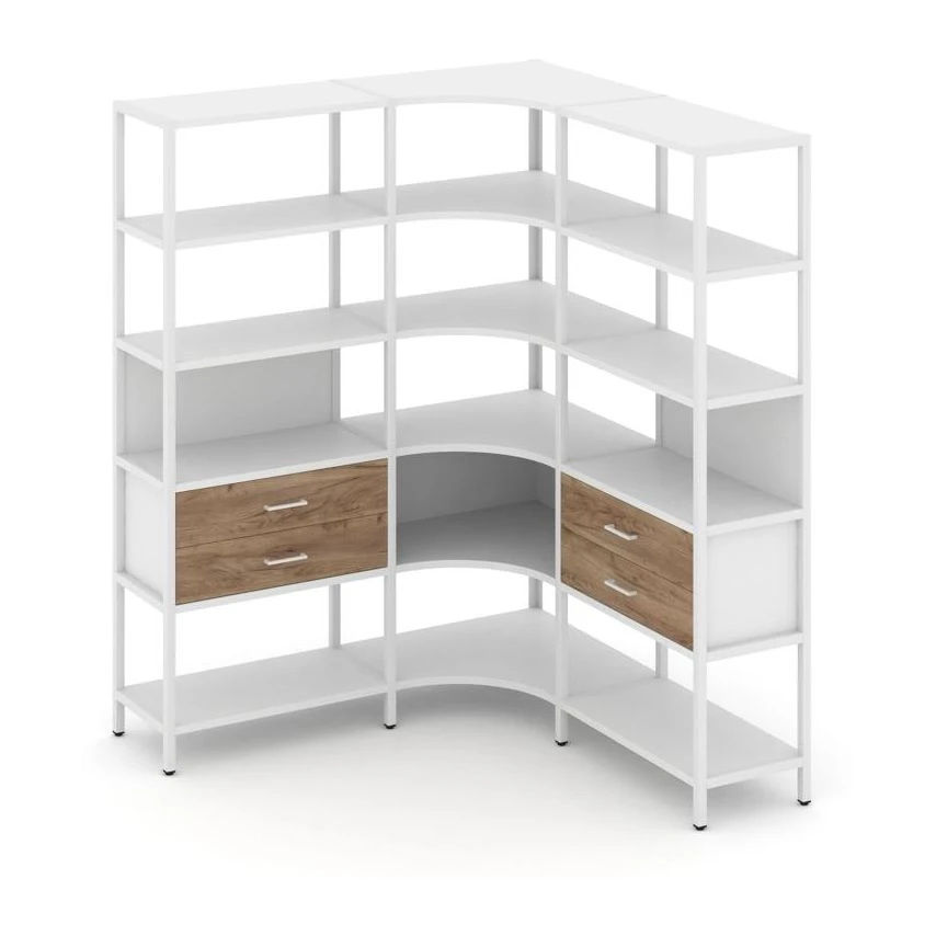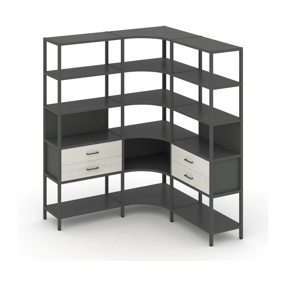 - Трехсекционный угловой стеллаж пятиярусный с ящиками 1590х1590х1980 Шелф Систем / Shelf System