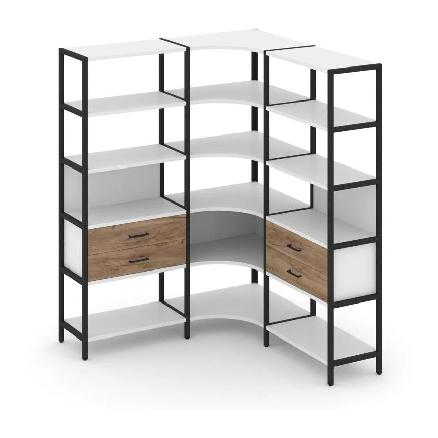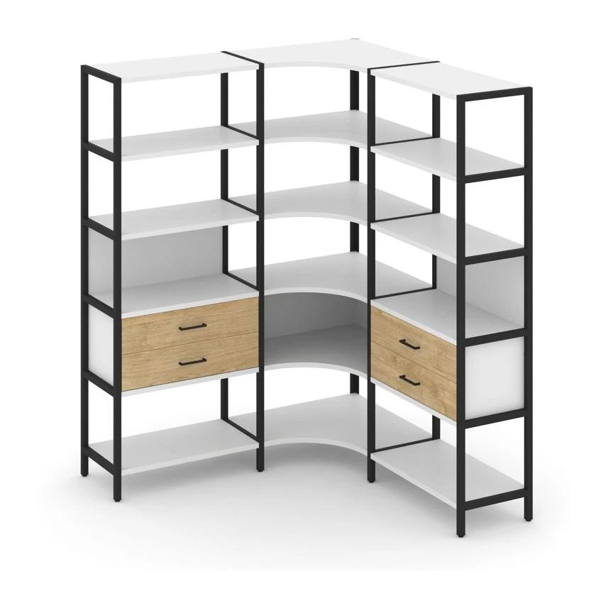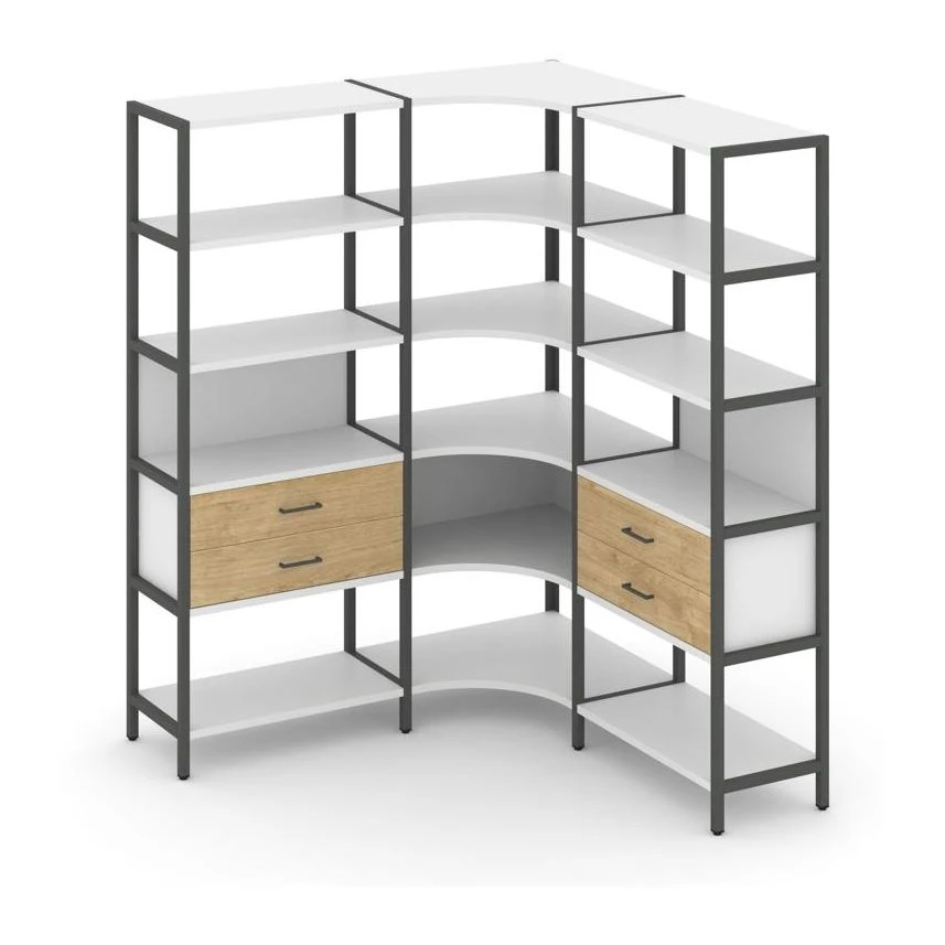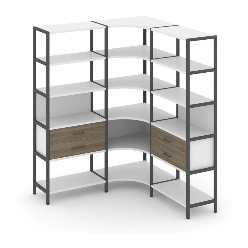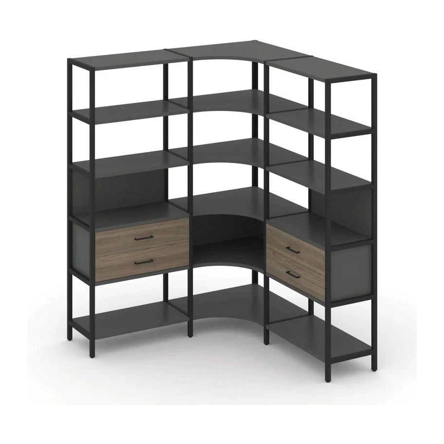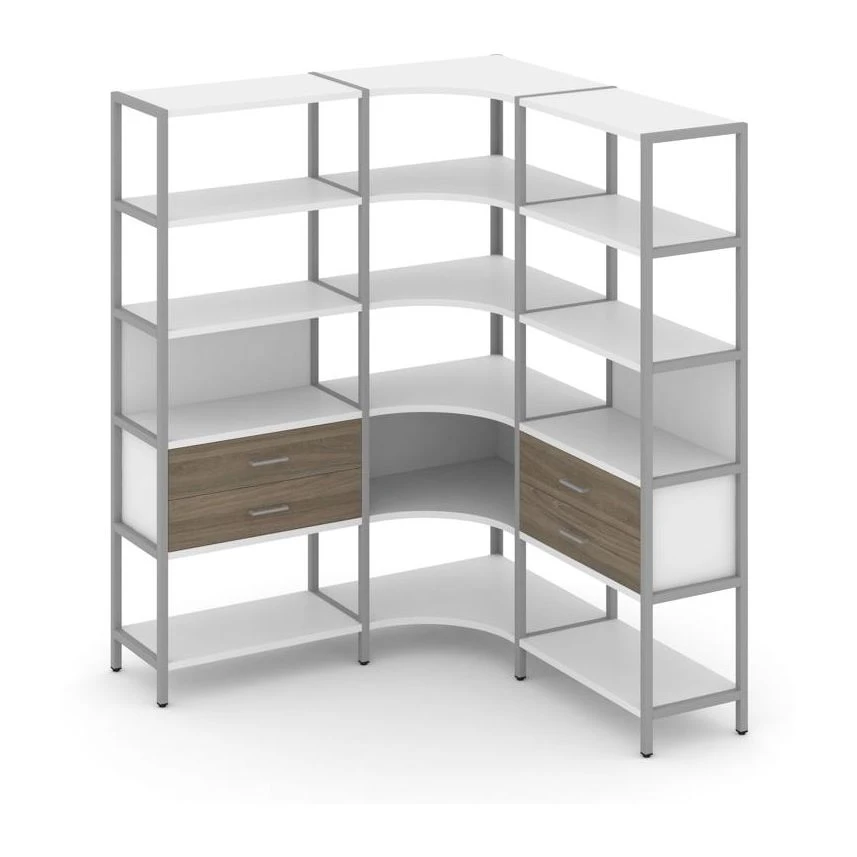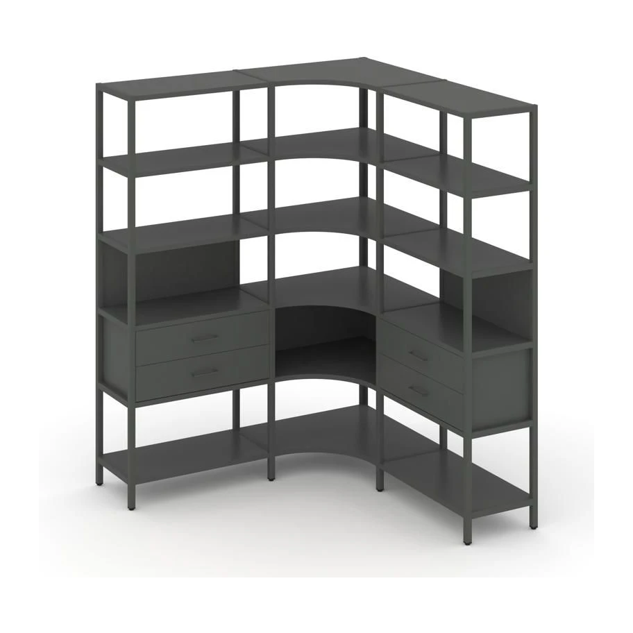- Трехсекционный угловой стеллаж пятиярусный с ящиками 1590х1590х1980 Шелф Систем / Shelf System